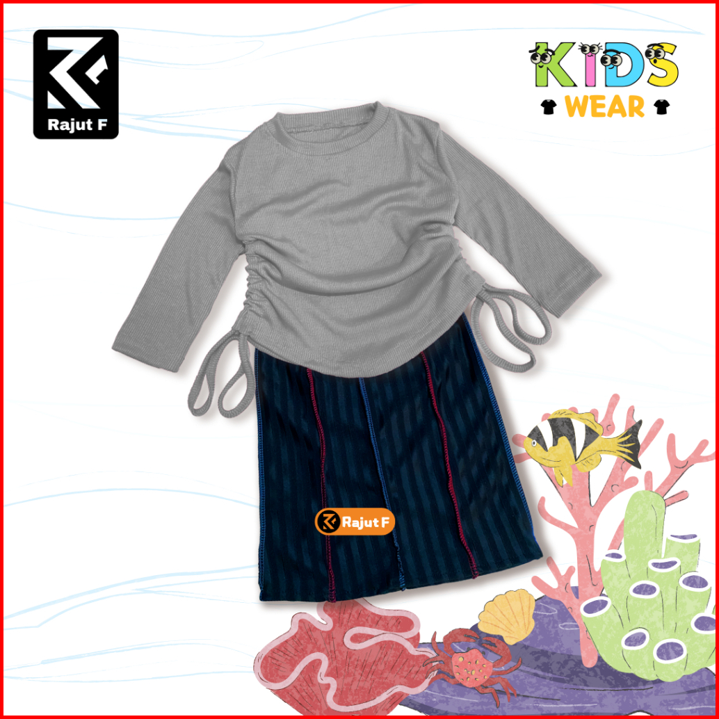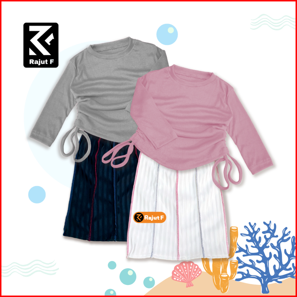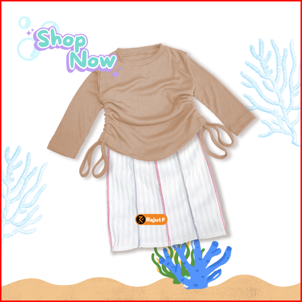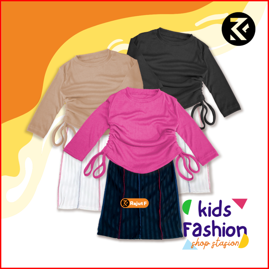Oneset Alice Atasan Baju Serut Anak Perempuan Rok Span Knit Hornet Korea Fashion 1-6th