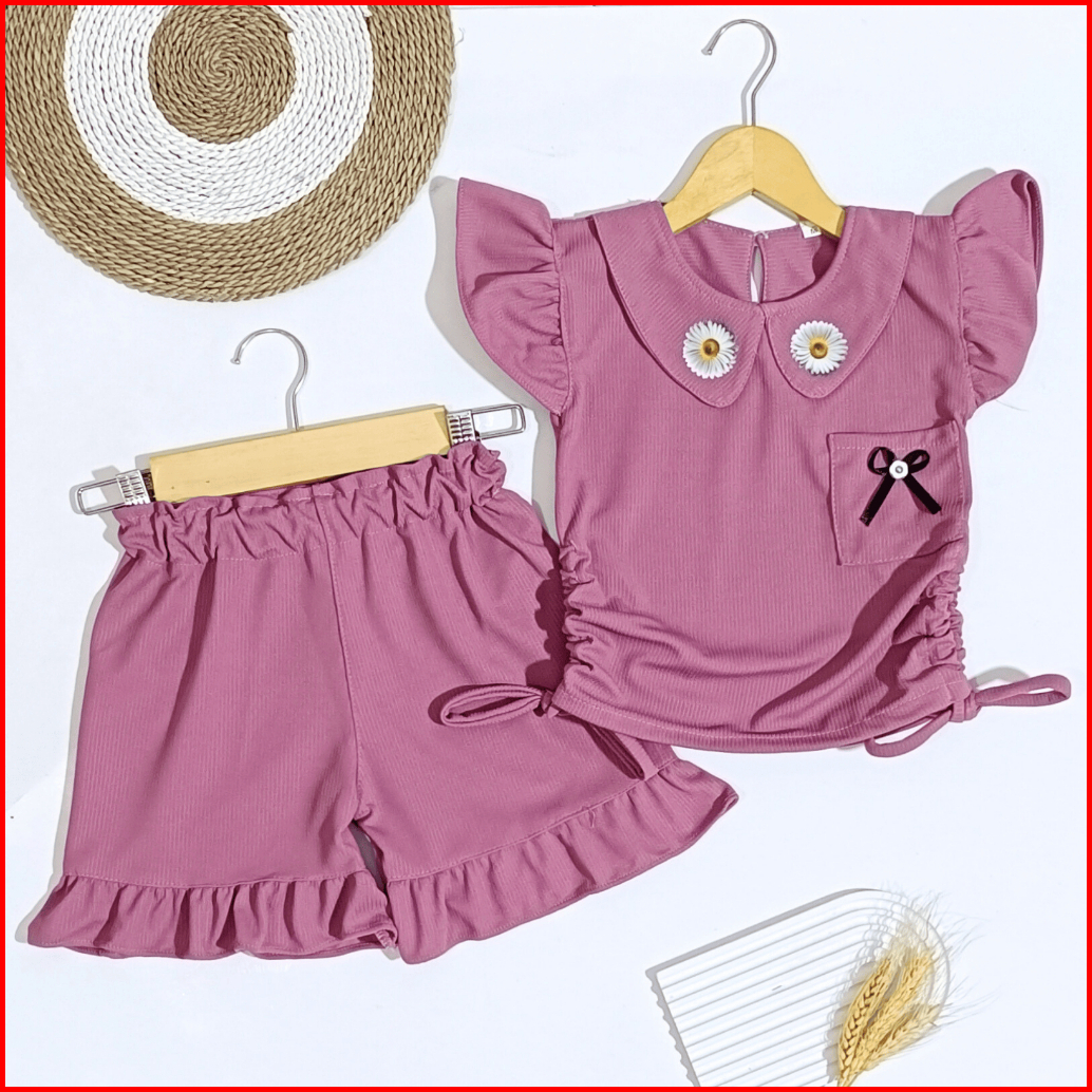 Setelan Anak Perempuan Gempita Usia 1-7 Tahun Terbaru Bahan Knit Hornet Mix Crinkle Airflow