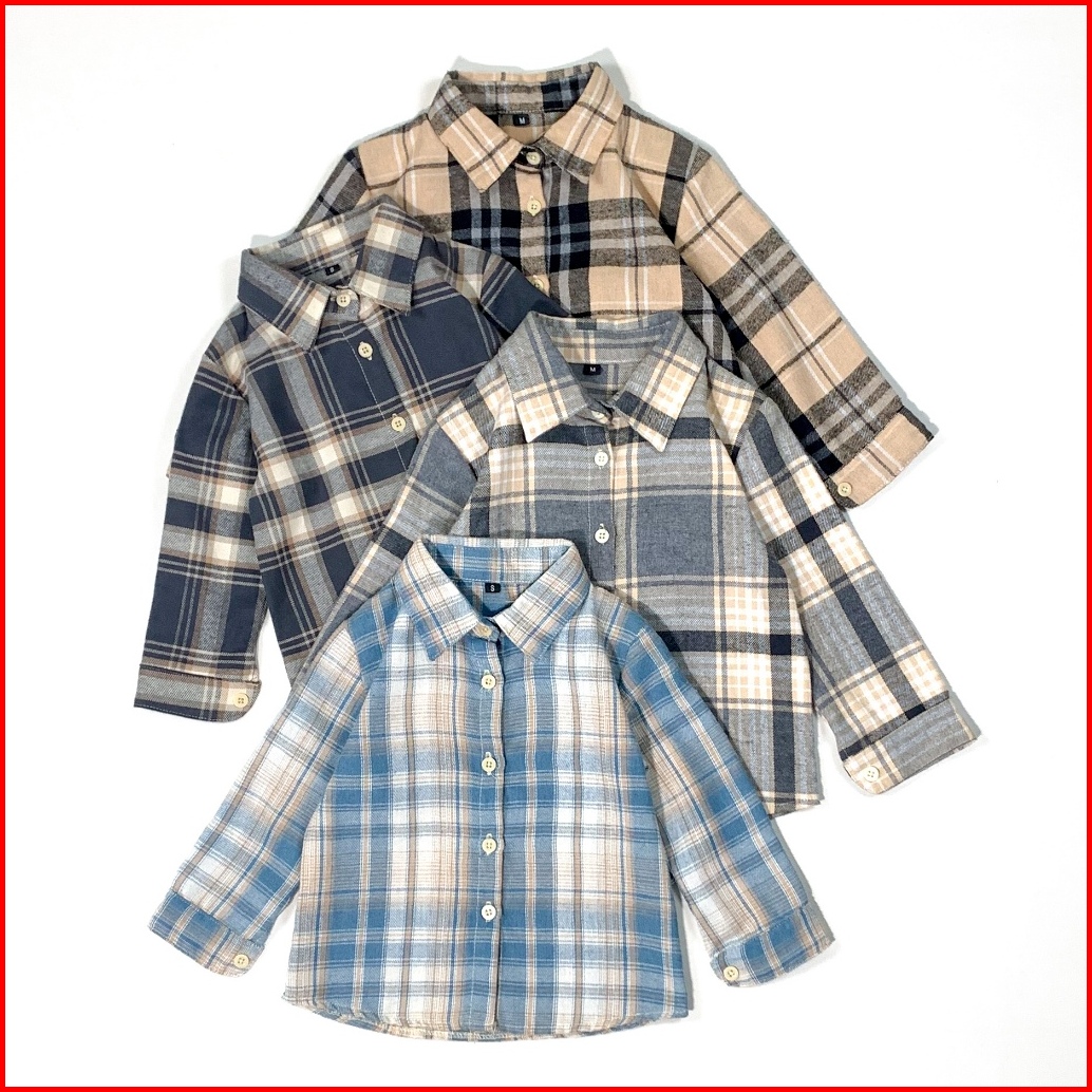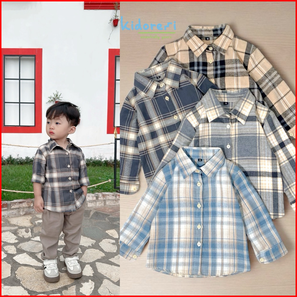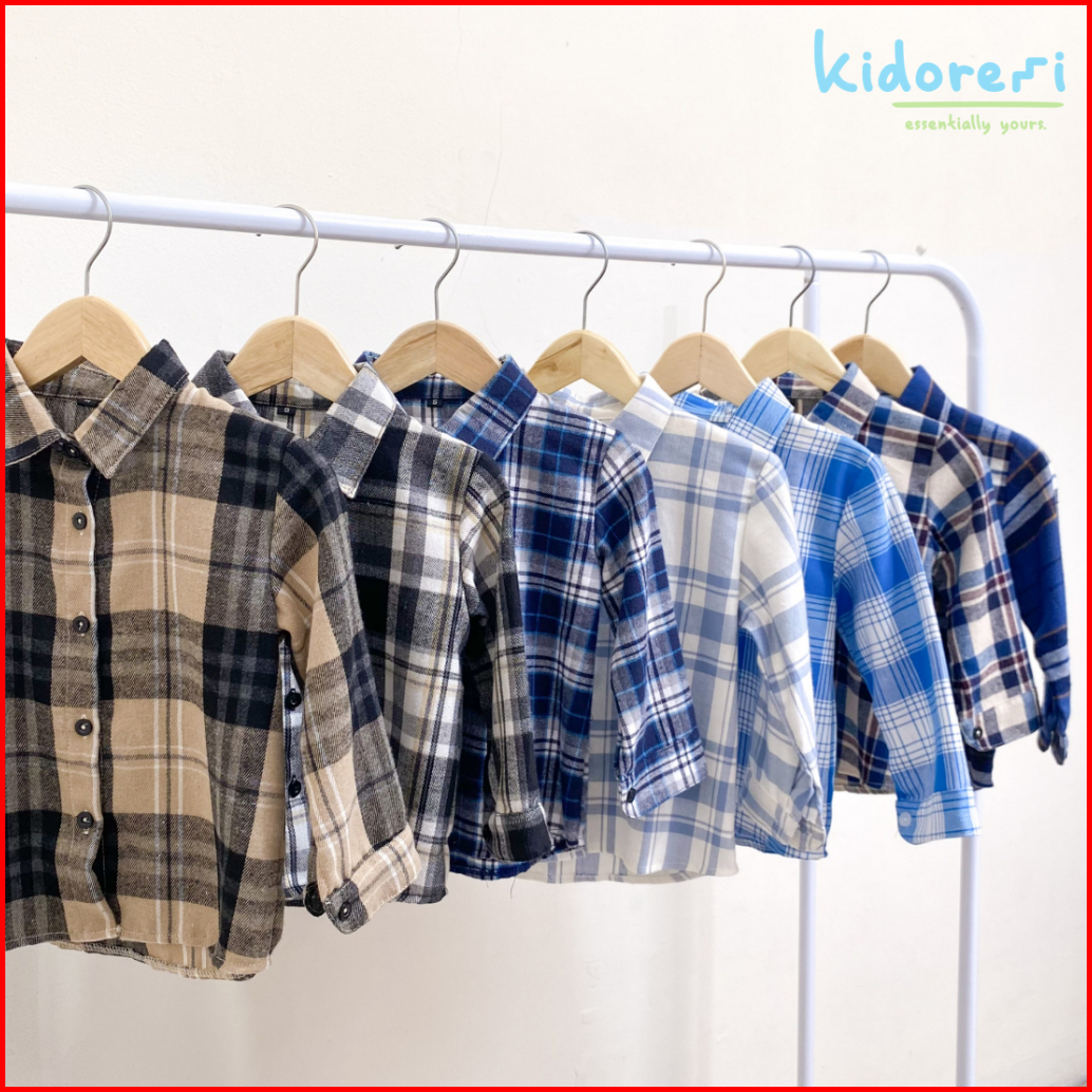 Kidoremi Flannel Shirt - Kemeja Flannel Anak Laki-laki Perempuan 1-5 Tahun Panjang Kotak-kotak Katun