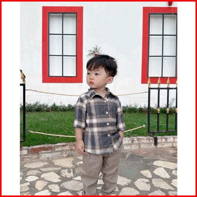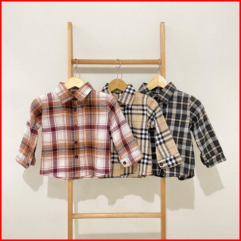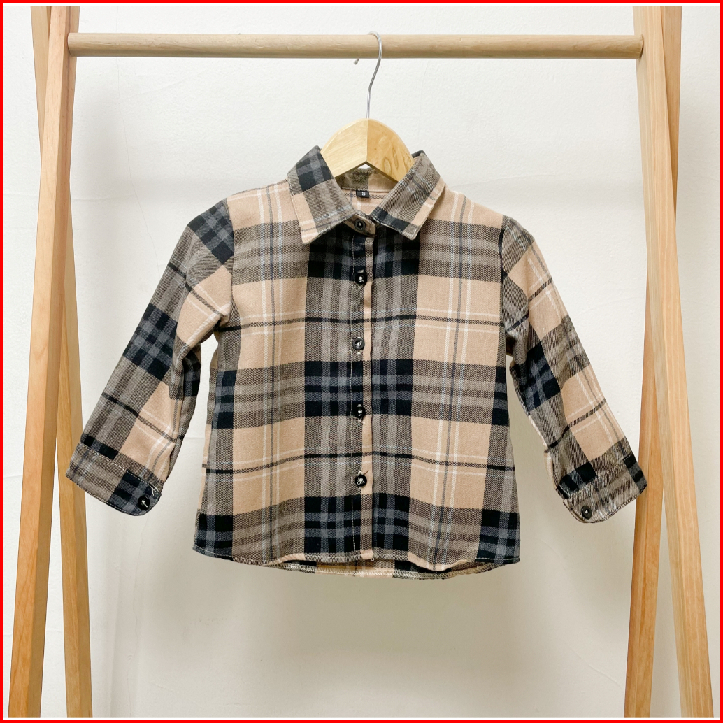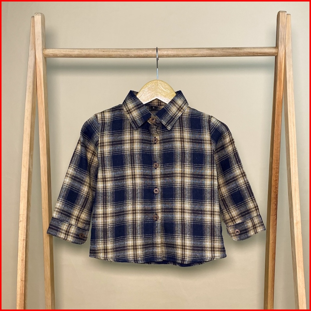 Kidoremi Flannel Shirt - Kemeja Flannel Anak Laki-laki Perempuan 1-5 Tahun Panjang Kotak-kotak Katun
