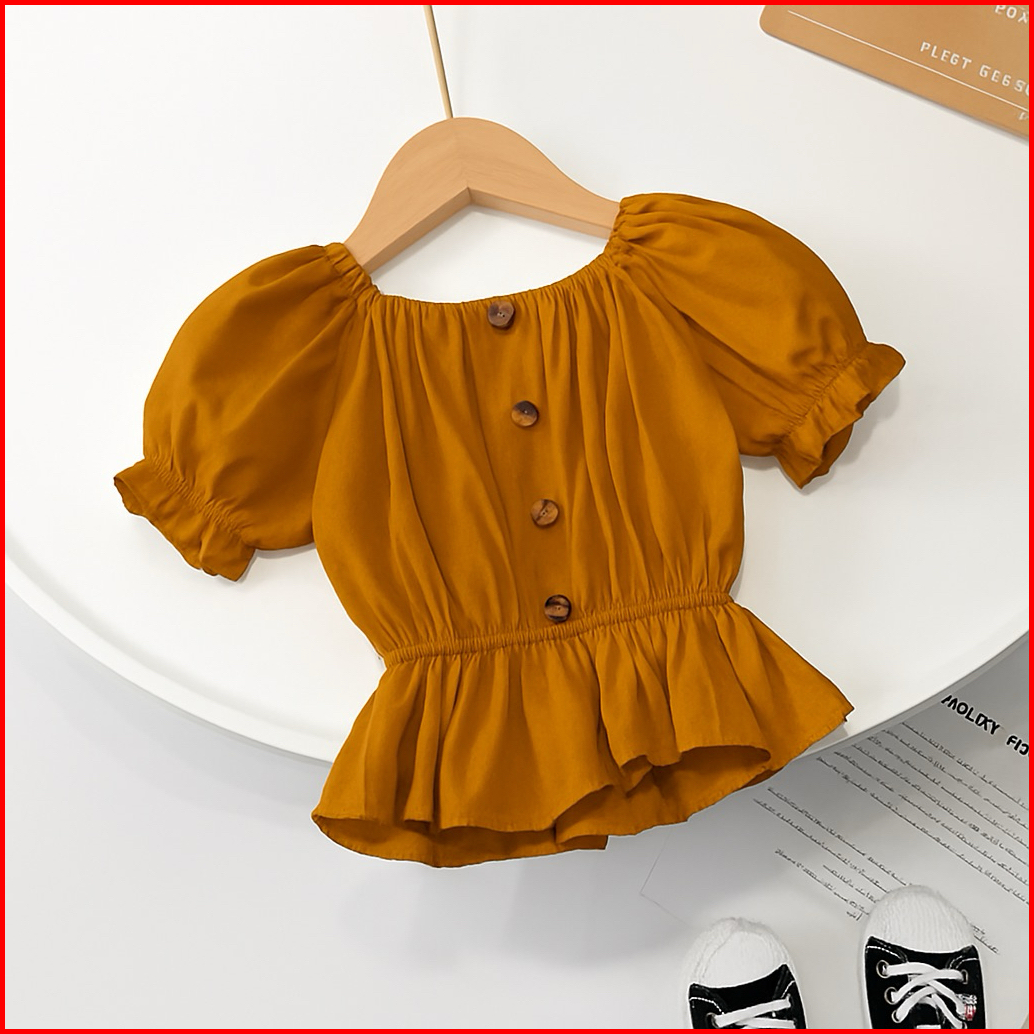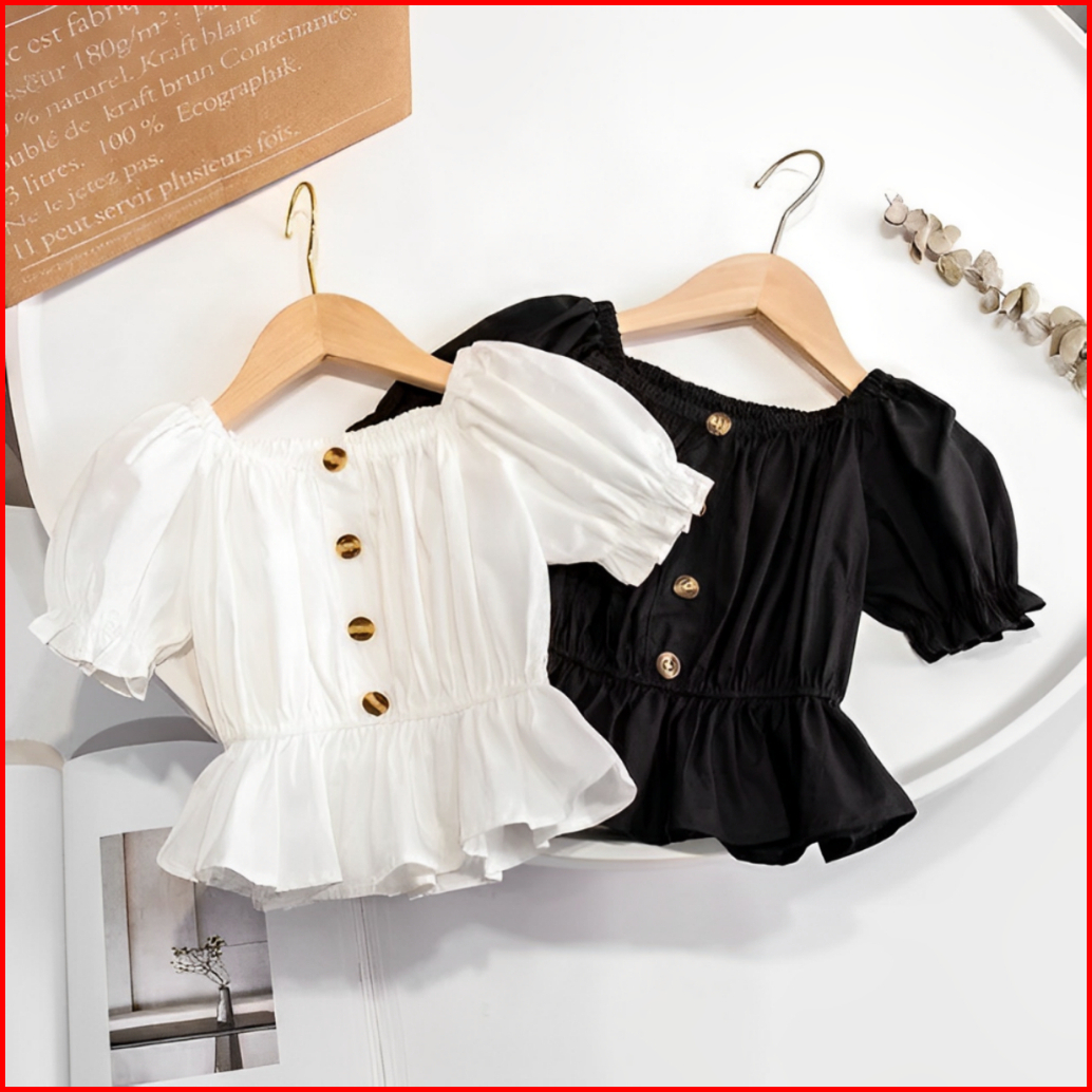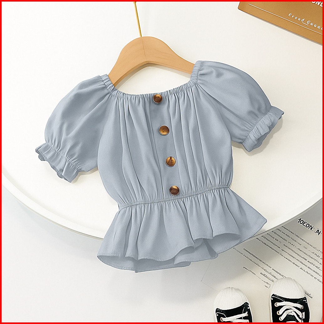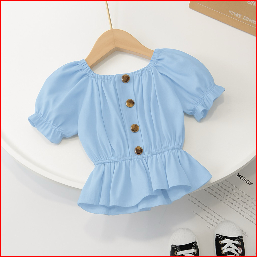 Baju Atasan Anak Perempuan Sabrina Kerut Umur 1 - 8 Tahun Blouse Airflow Style Anak Lengan Pendek
