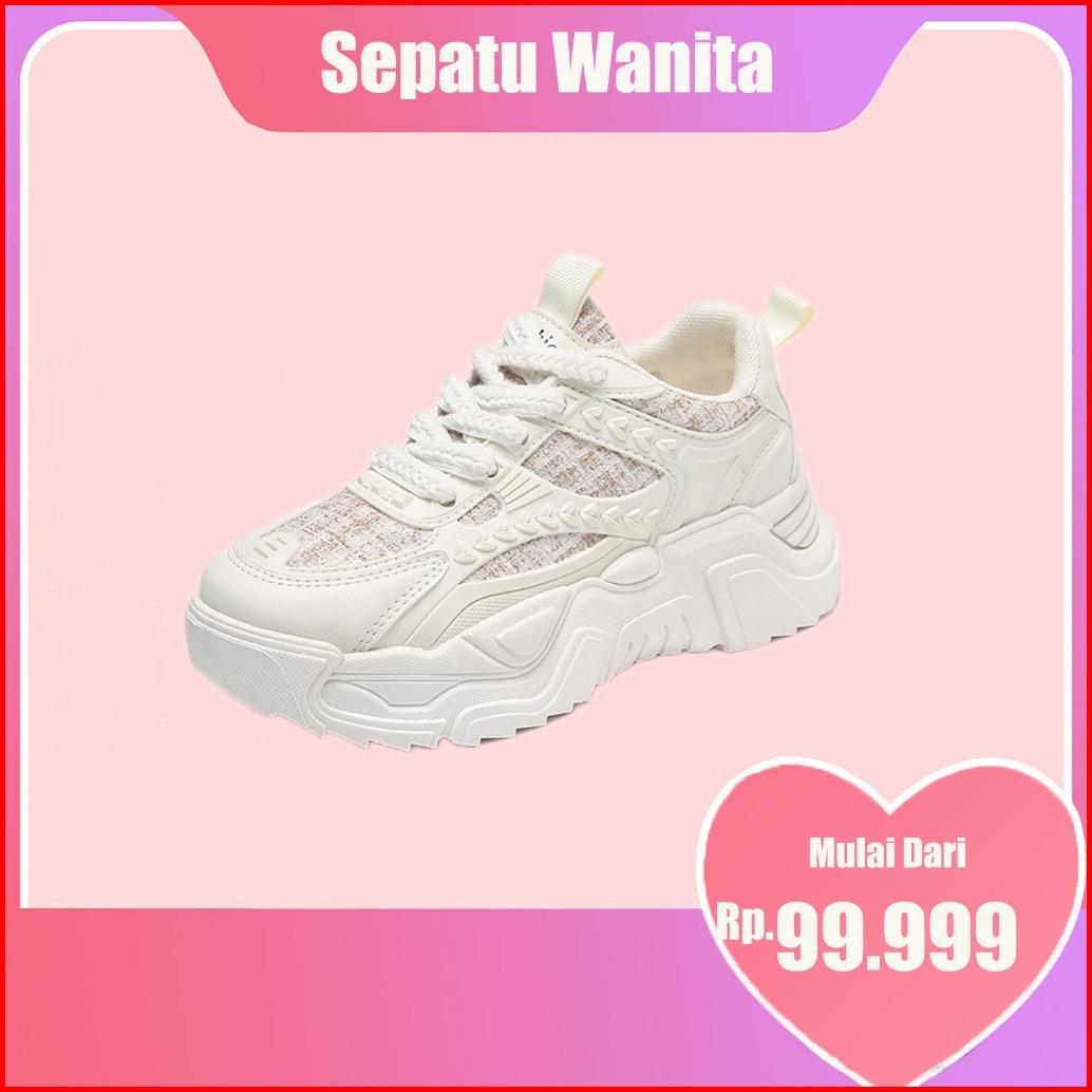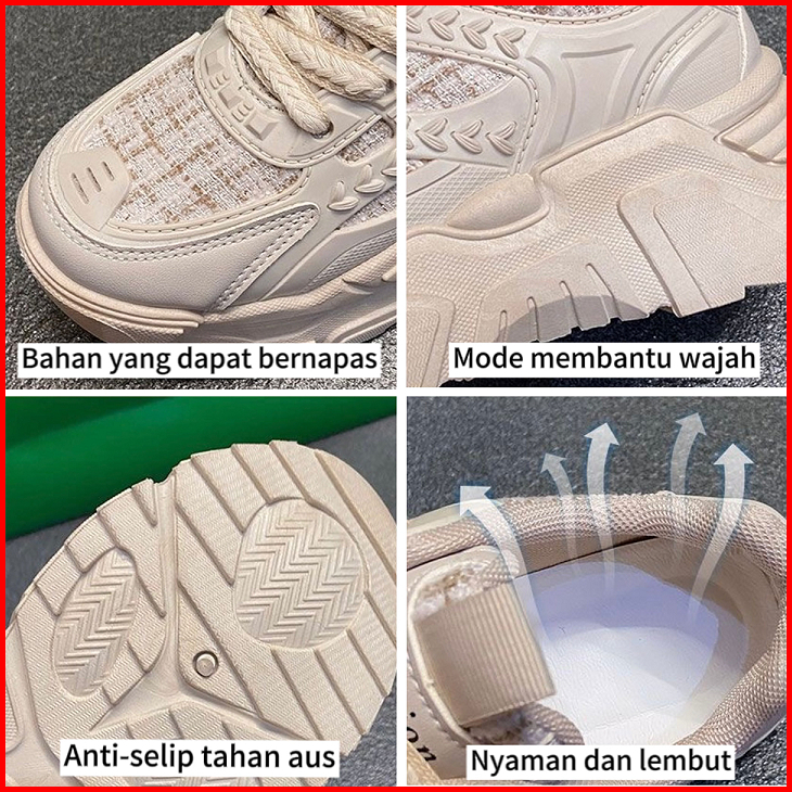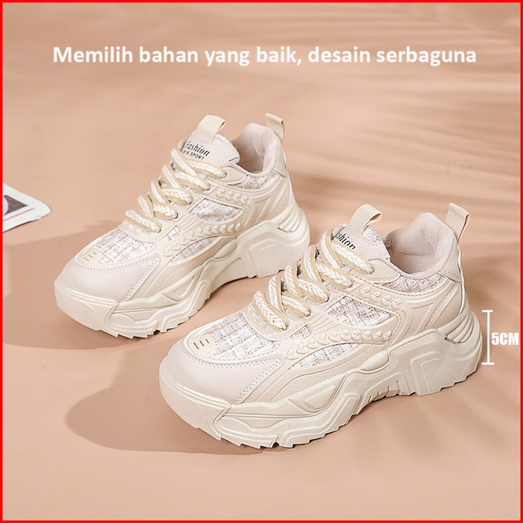 Sepatu Sneakers Wanita Fashion Shoes Sol Karet Anti-seliptinggi Tumit 5cm Puith Hitam Krem St023