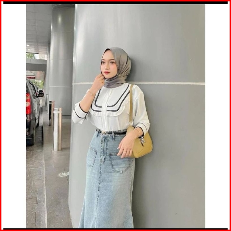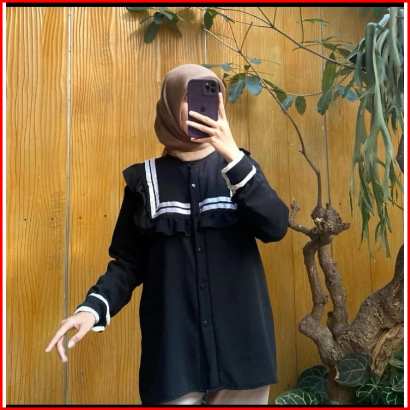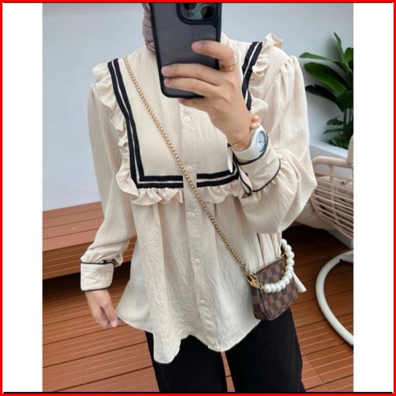 Blouse Ruffle Crinkle Airflow Wanita Nonny High Qualty