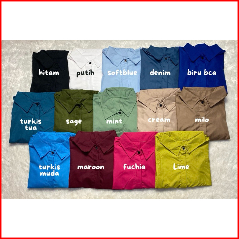 Hitam alya, Putih alya, Maroon alya, Fuschia alya, Sage alya, Jotol alya, Mint alya, Cream alya, Milo alya, Lime alya, Biru bca alya, Turkis tua alya, Turkis muda alya, Denim alya