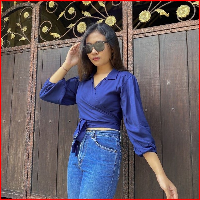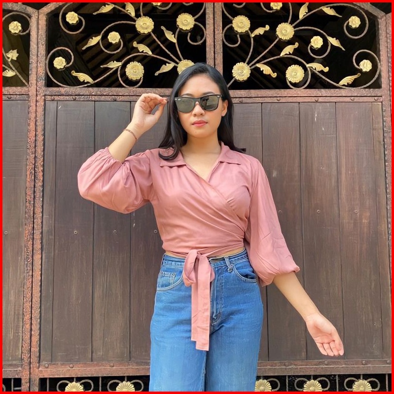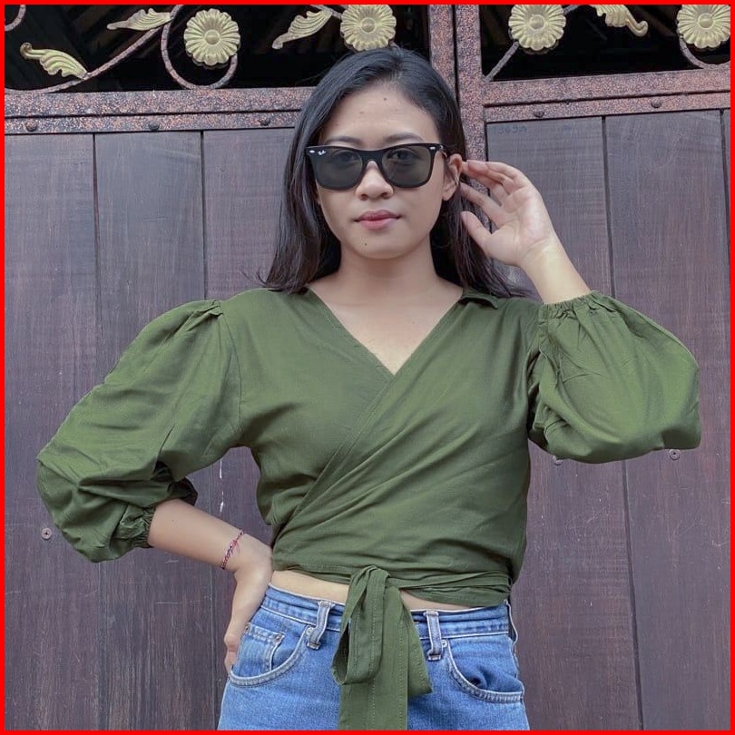 Wrap Top Blouse Outer Crop Top Rayon Atasan Wanita