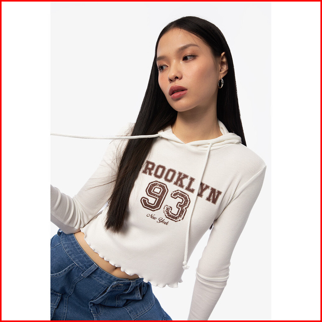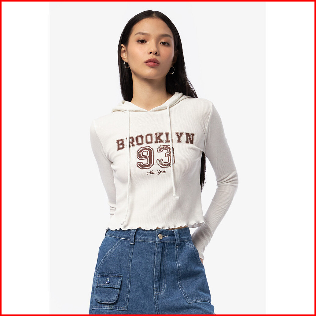 Colorbox Lettuce Hem Rib Hoodie Off White