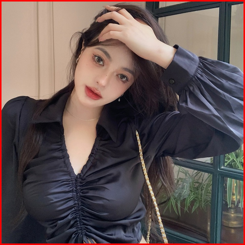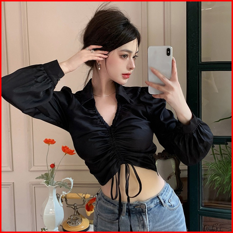 Cropped Blouse With Puff Long Sleeves 1668 S-xl