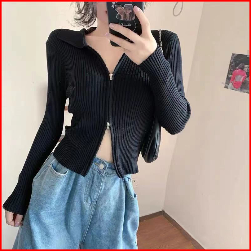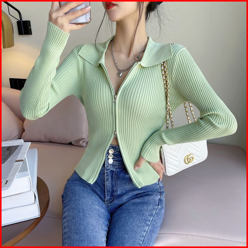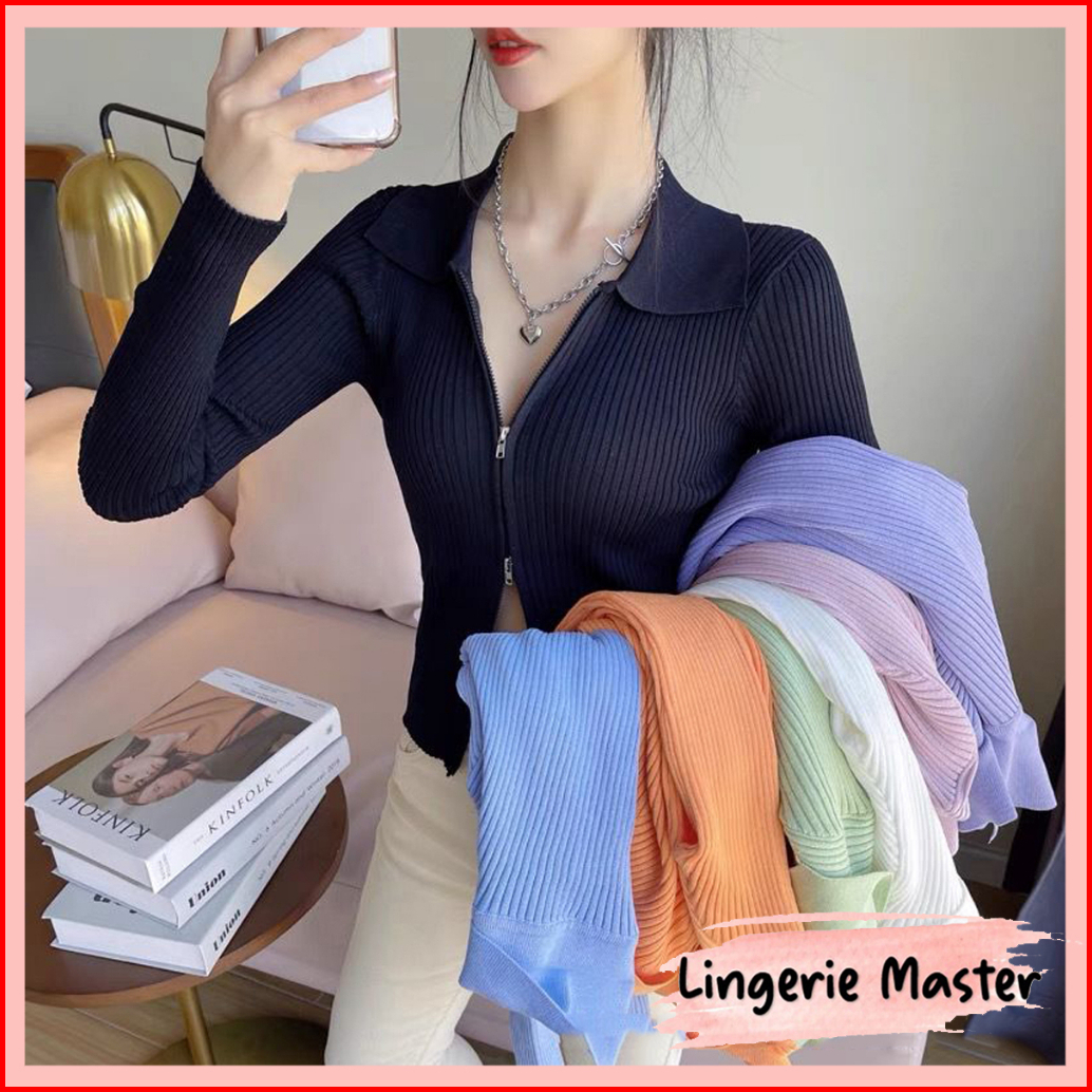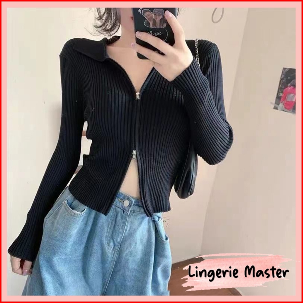Lingerie Master - T-18 Korean Outer Knit Zip Shirt Blouse Long Sleeves Atasan Kemeja Resleting