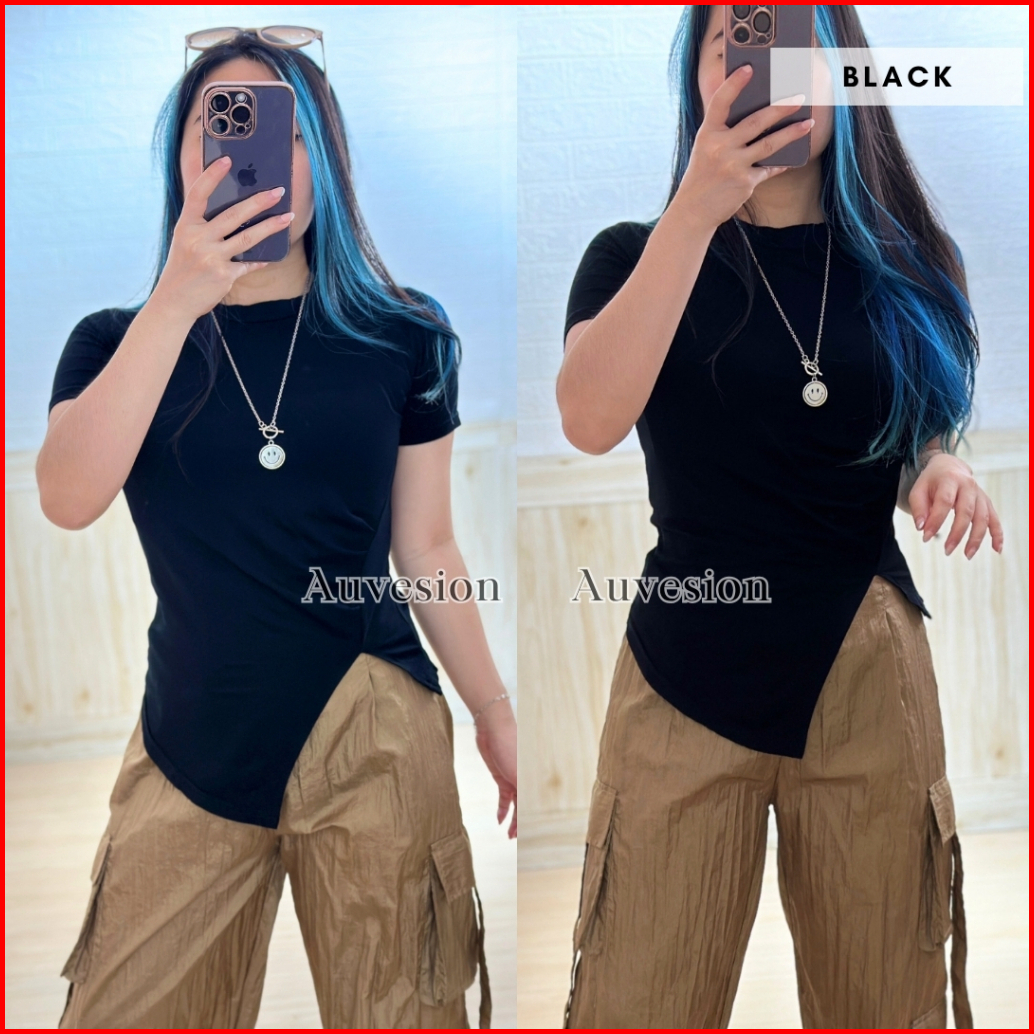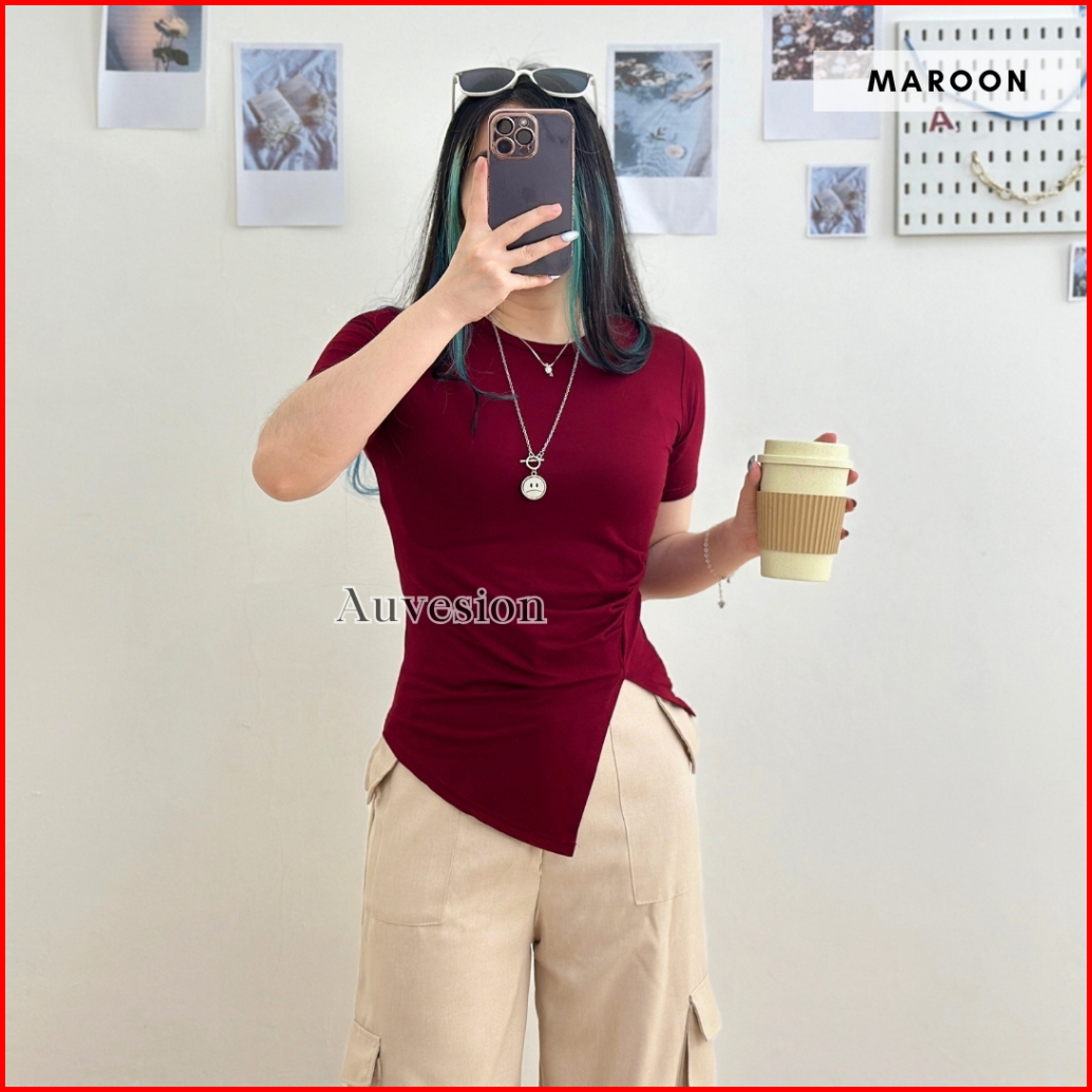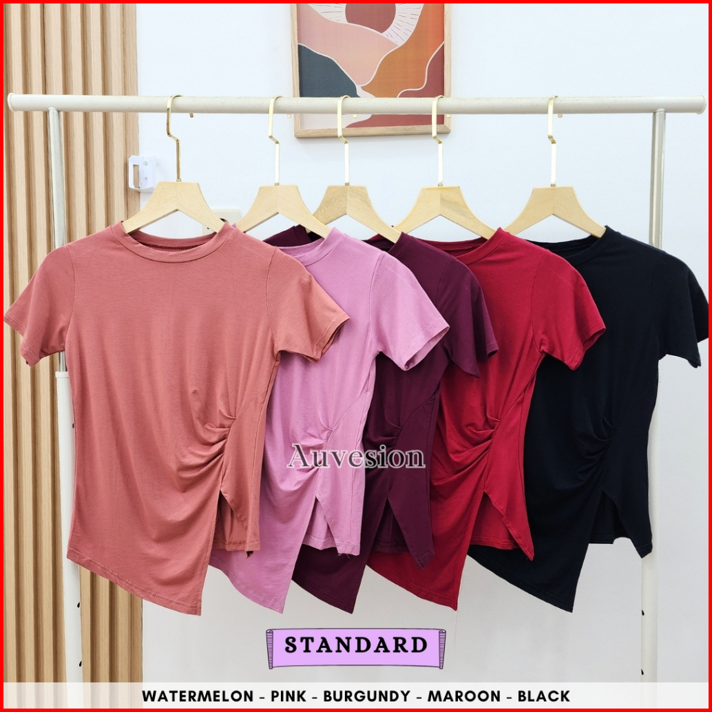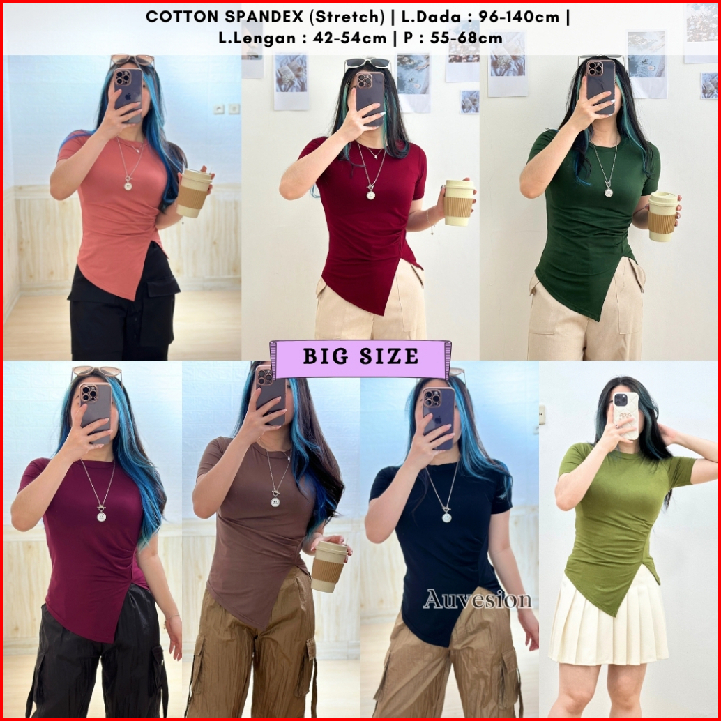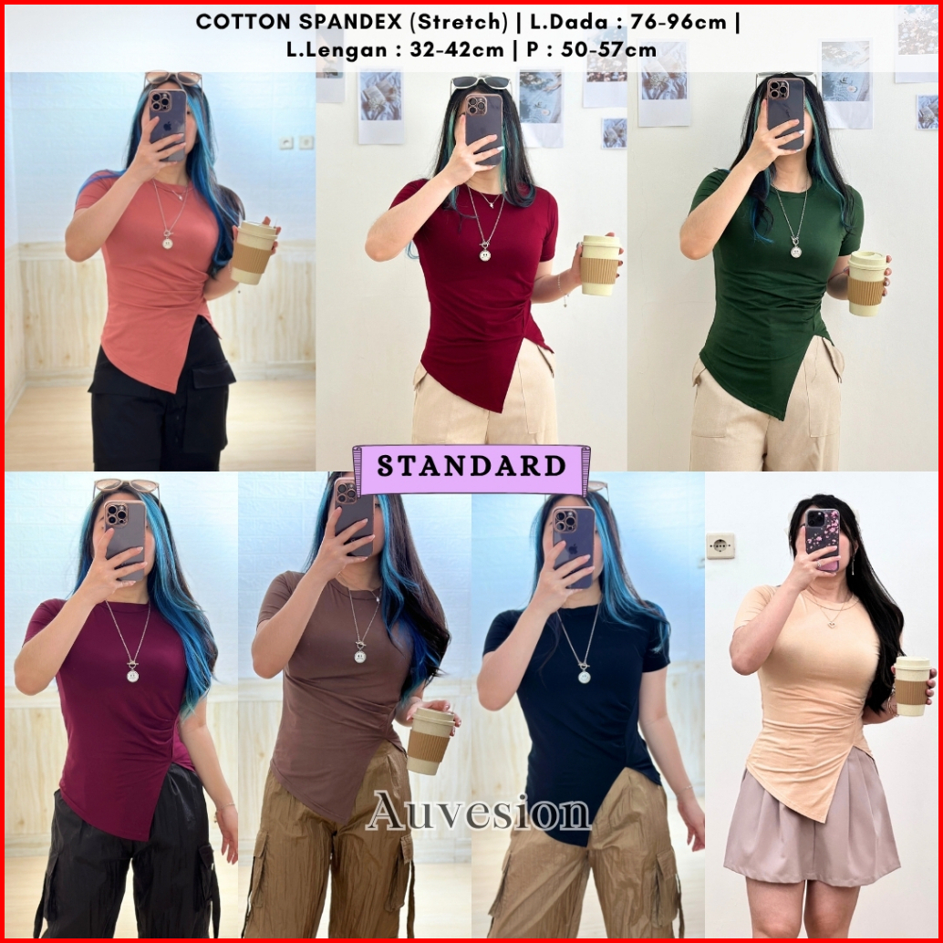 Auvesion Ova Spandex Shirred Top 4935 Atasan Kaos Wanita Spandex Fit Body Melar Bigsize
