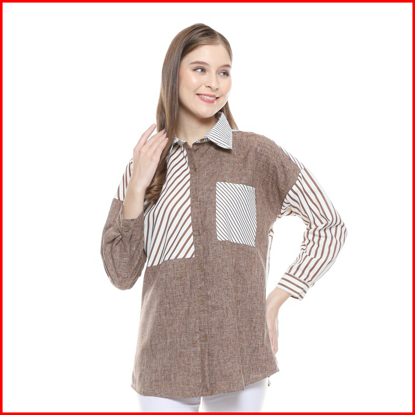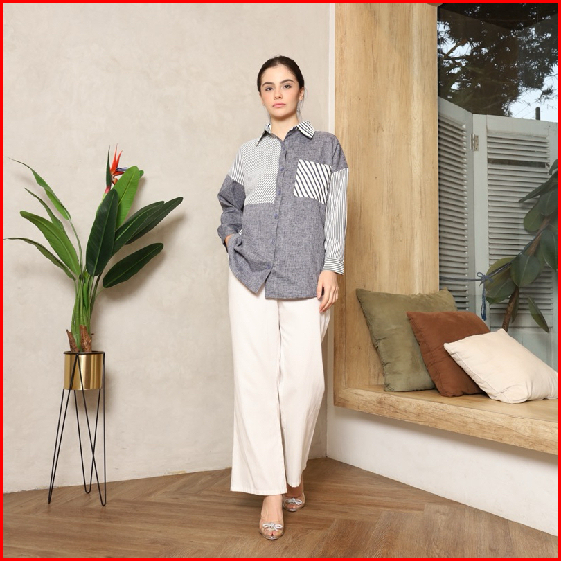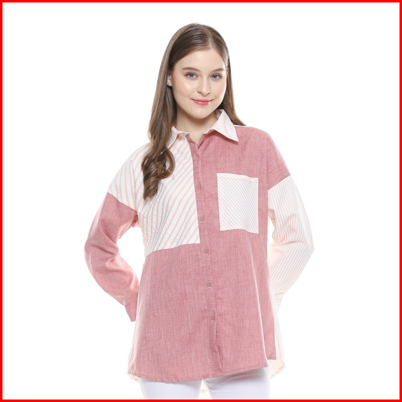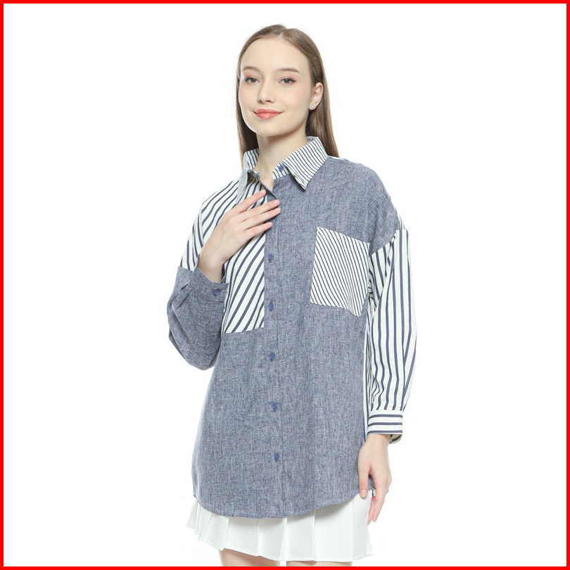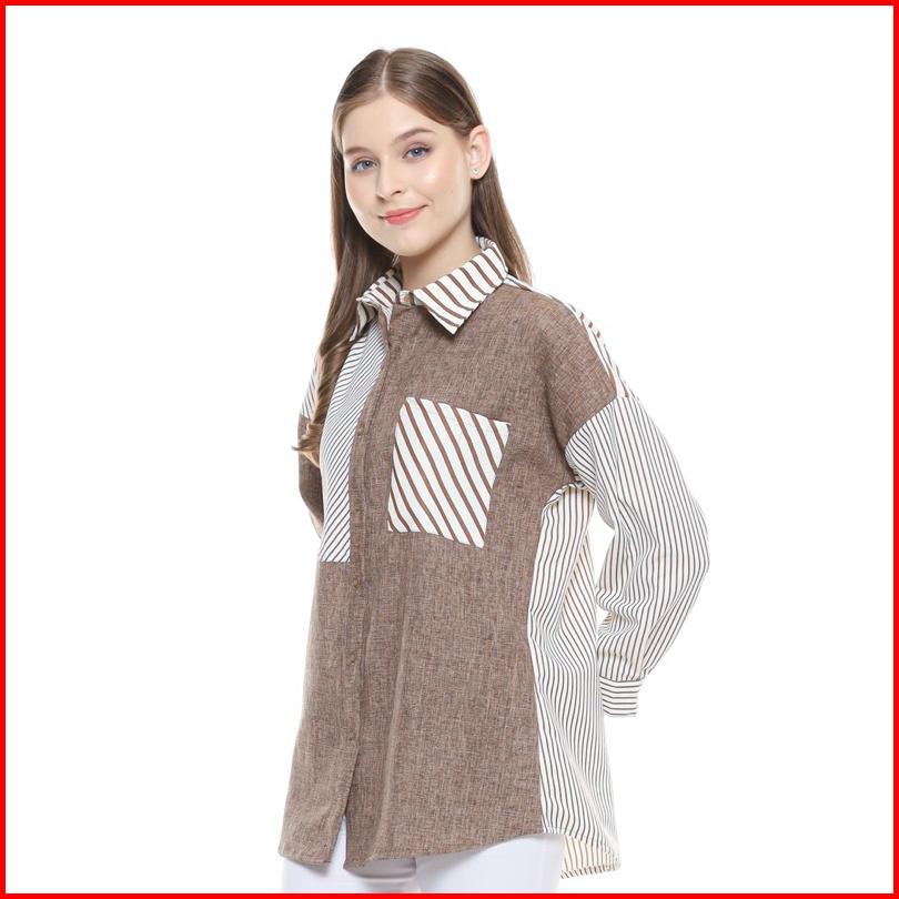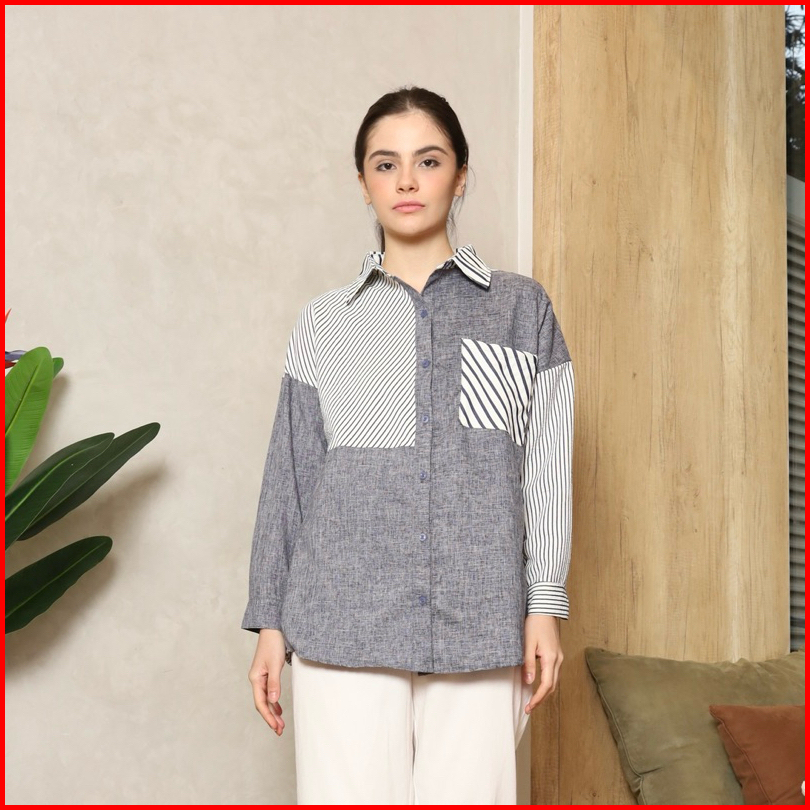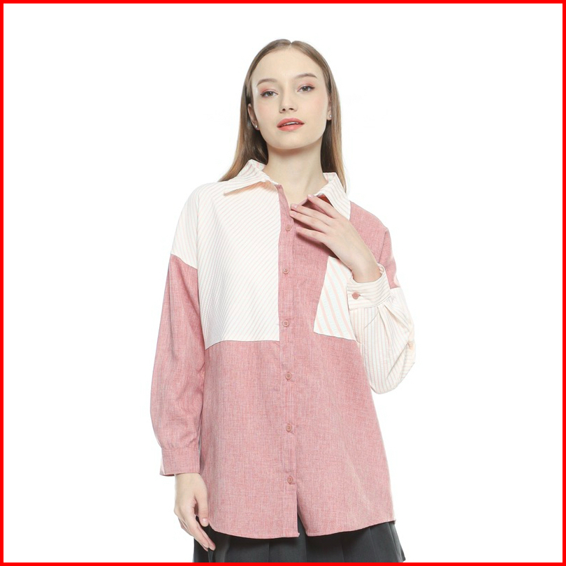 Senchi - Hikari Block Colors Shirt Atasan Kemeja Wanita Kemeja Wanita Style Jepang Korea Atasan Wanita Kombinasi