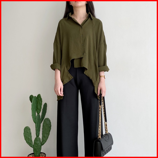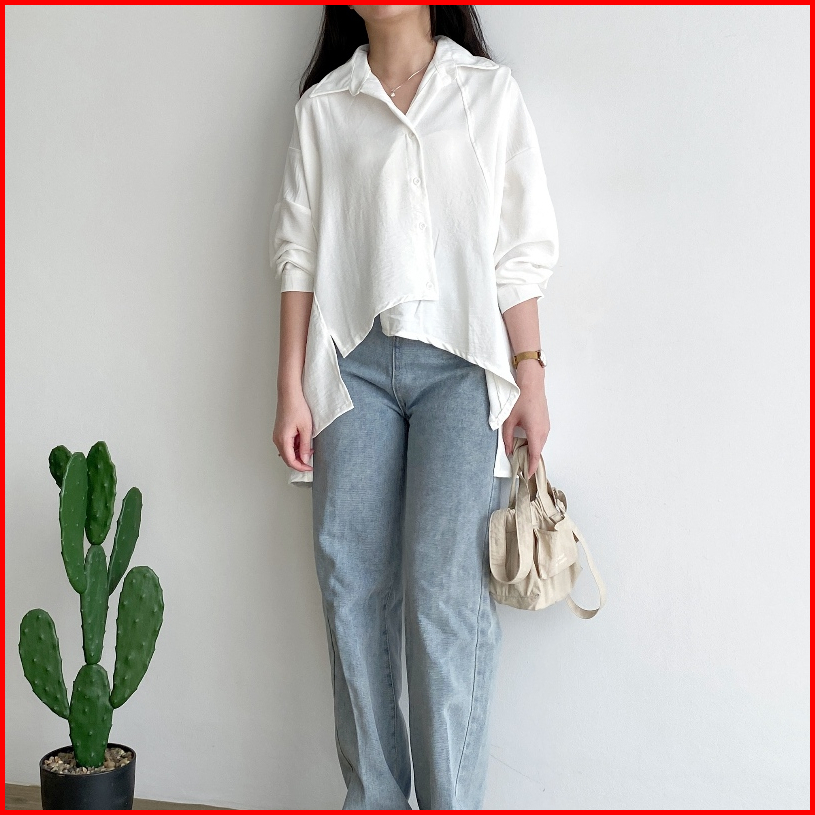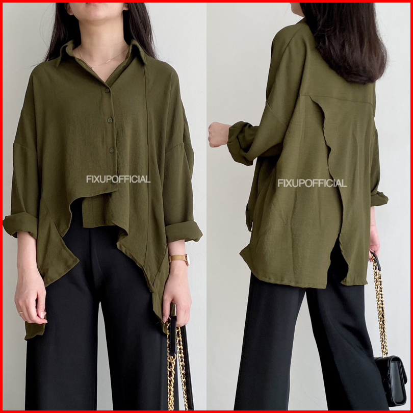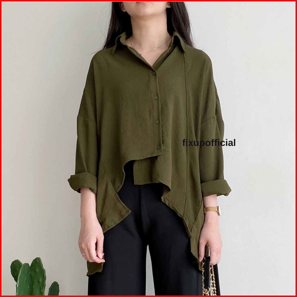 Fixup Sila Shirt - Atasan Wanita Lengan Panjang- Kemeja Wanita - Atasan Korea Style - Kemeja Basic Kekinian - Long Sleev