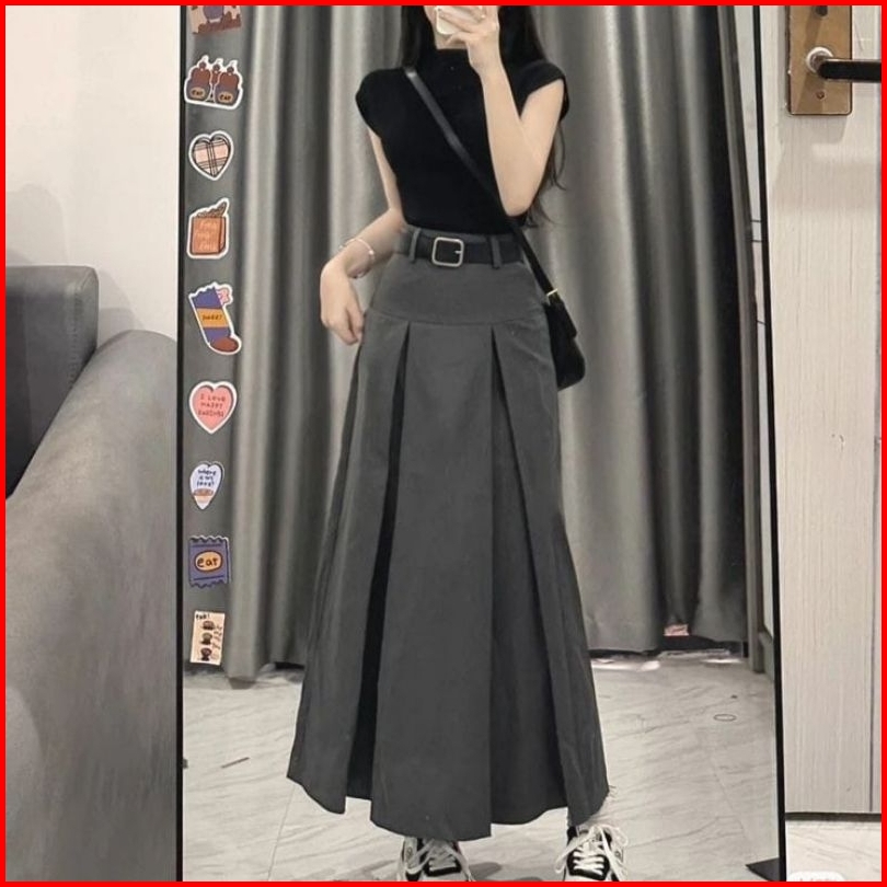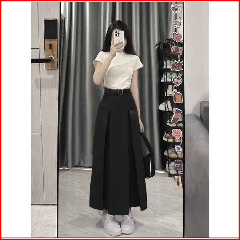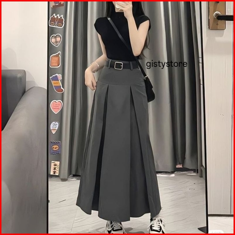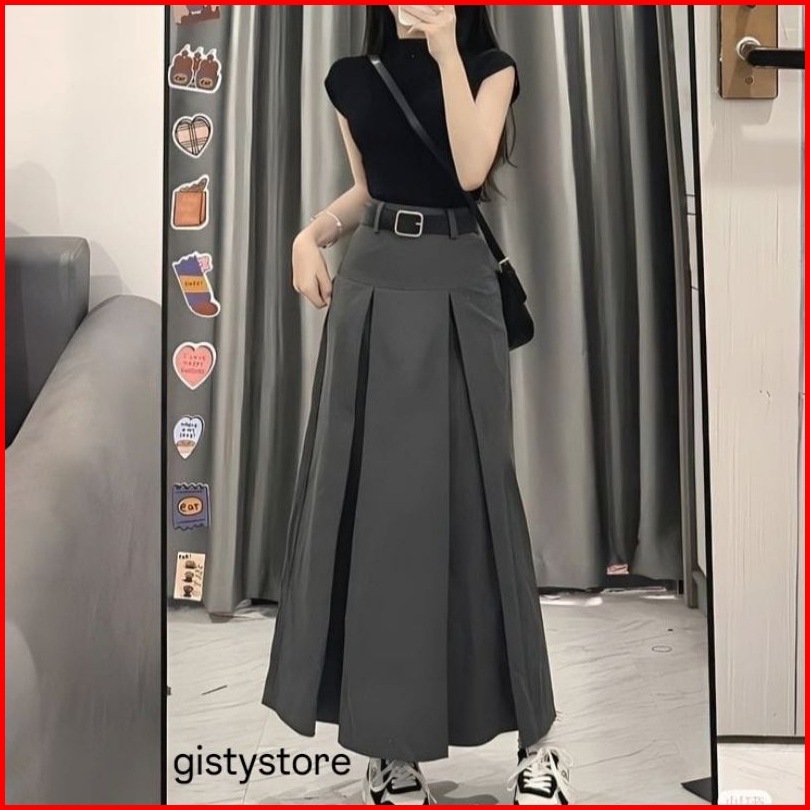 Rok Moana Skirt Korean Style Bahan Twill Premium - Rok Kerja Panjang Wanita Basic Reguler