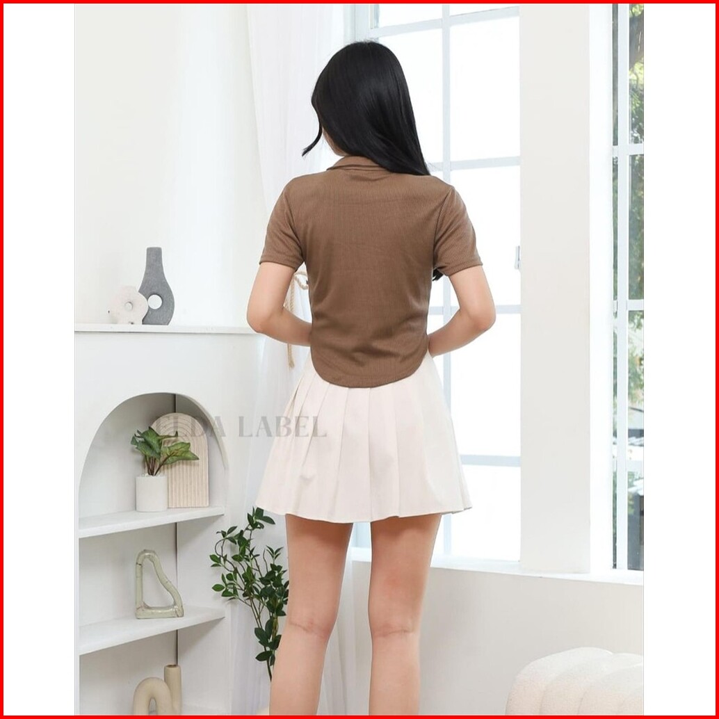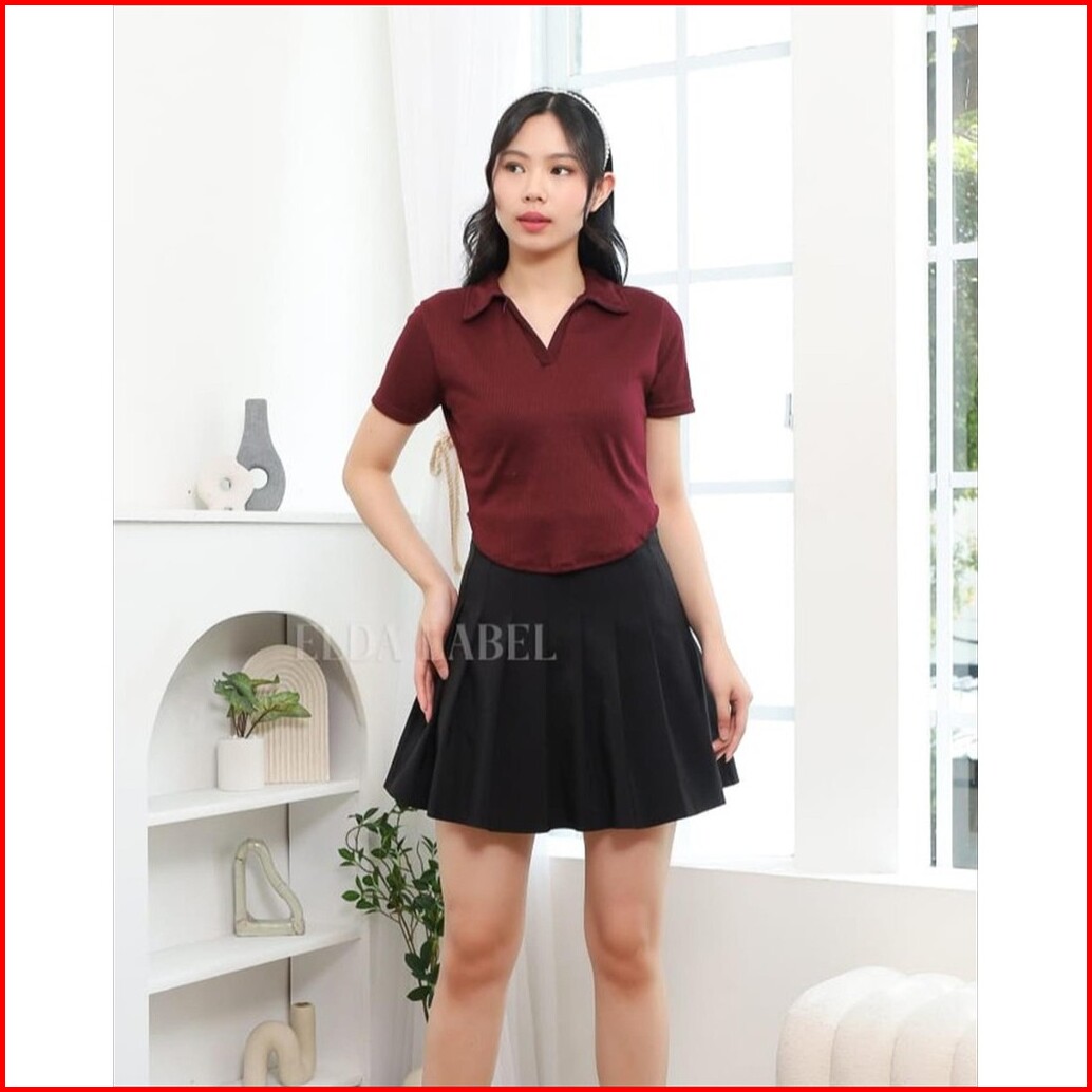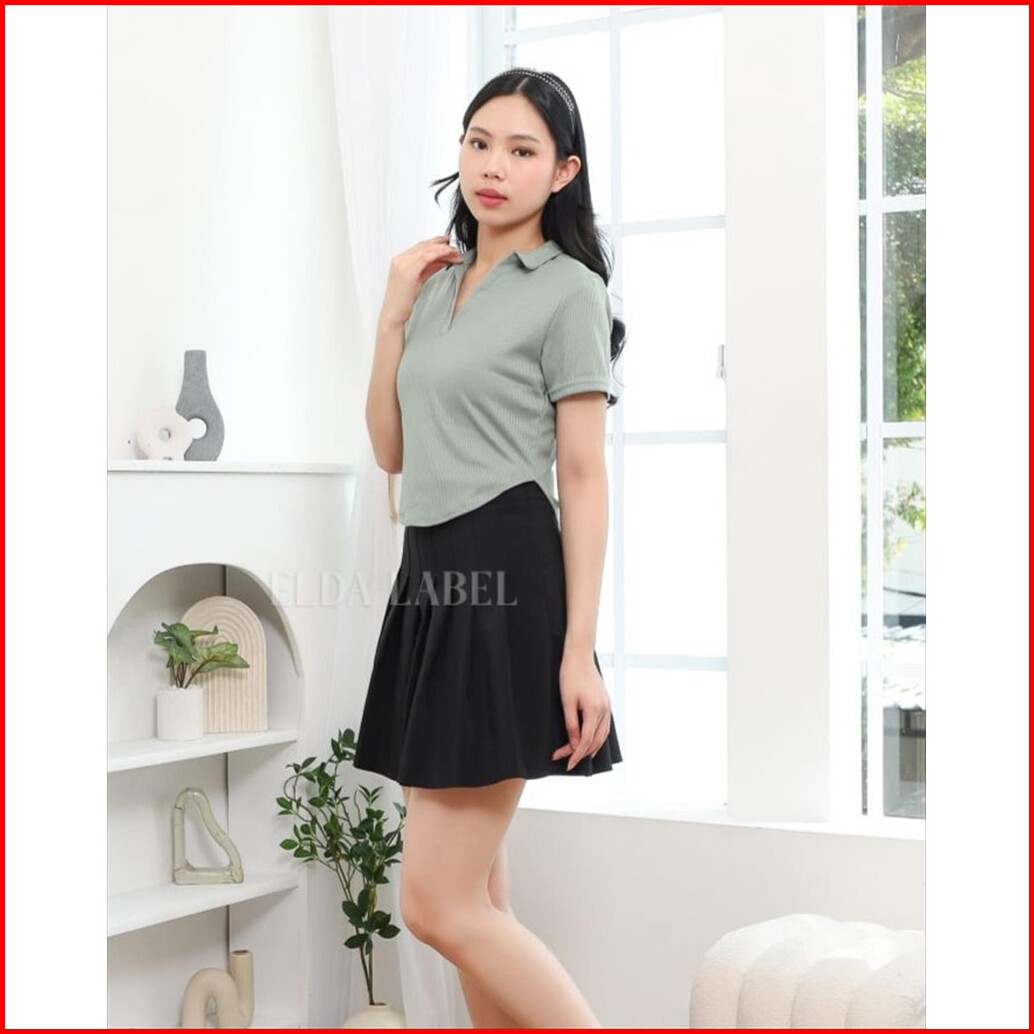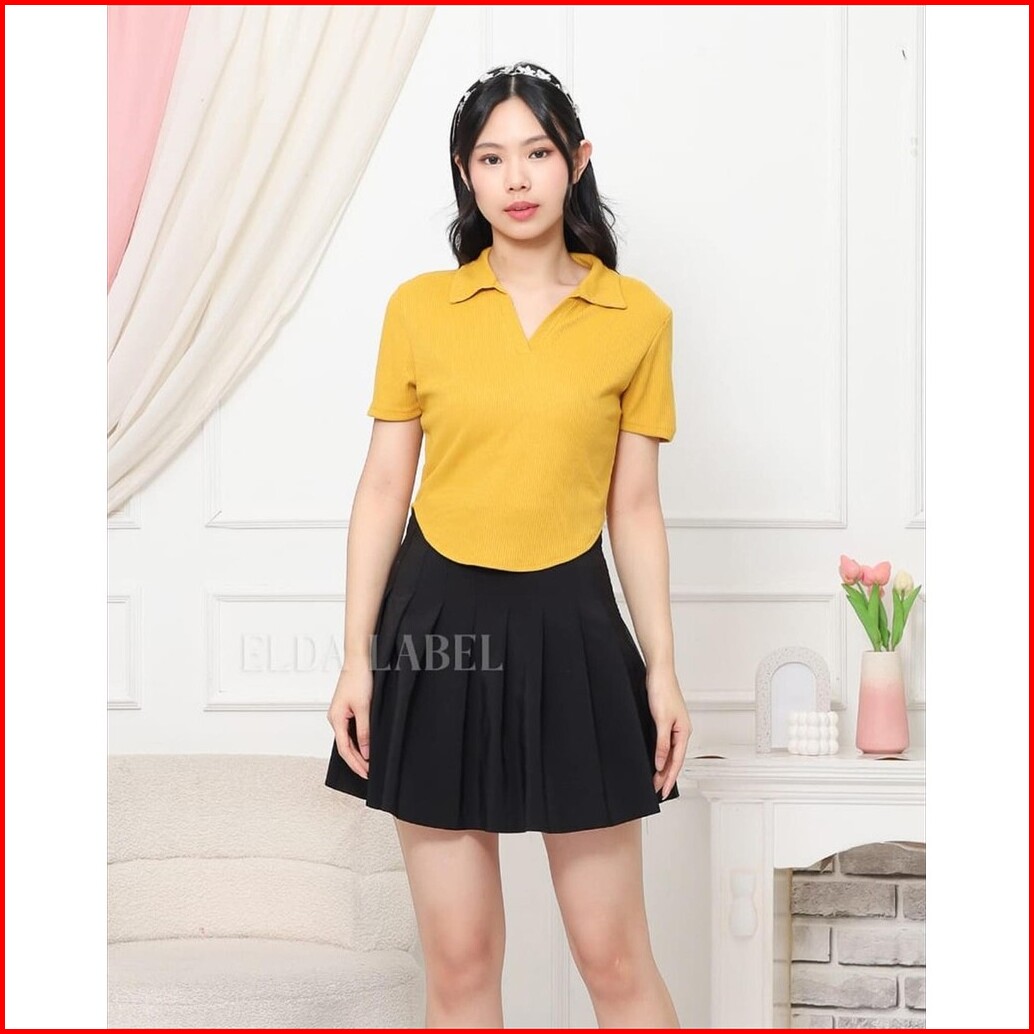 Elda Label Crop Top V Neck Oval Kekinian Lengan Pendek Wanita