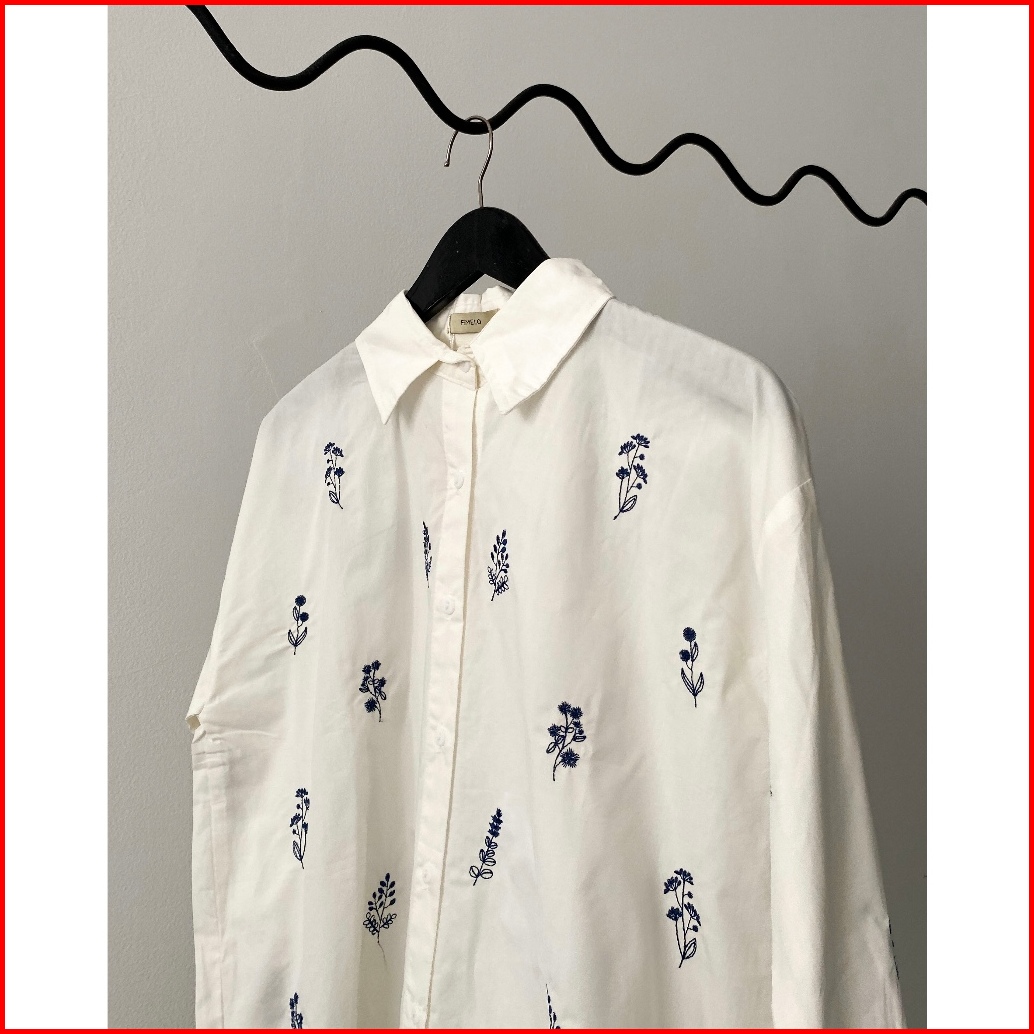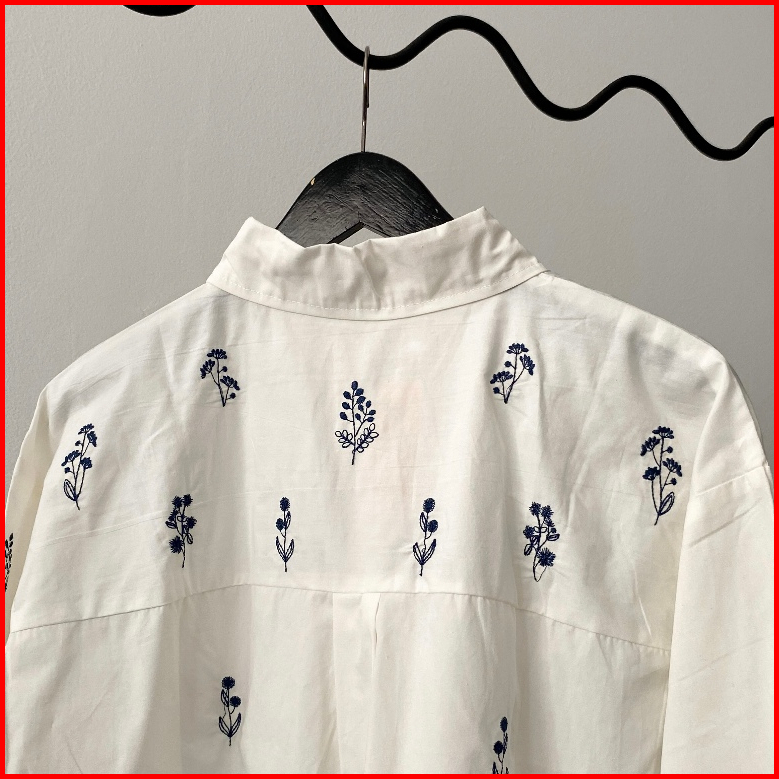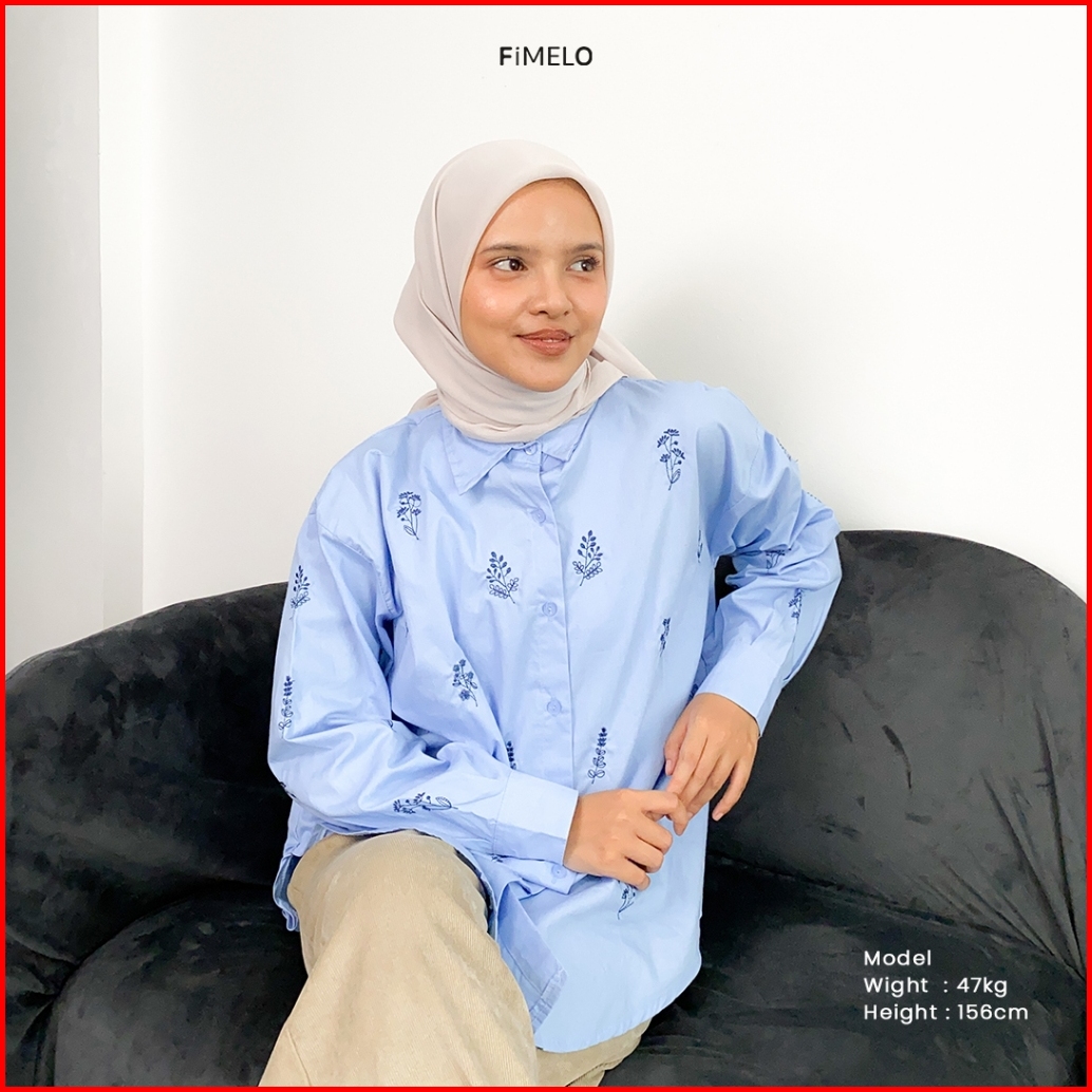 Fimelo Kemeja Wanita Dandelion Shirt Kemeja Poplin Motif Bunga Bordir