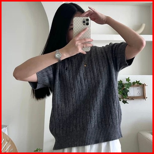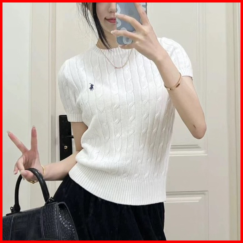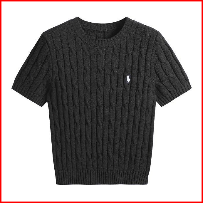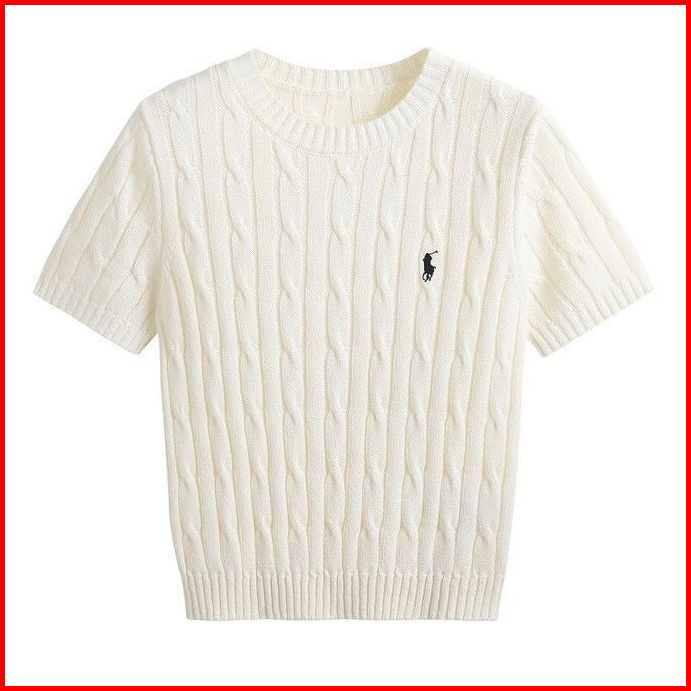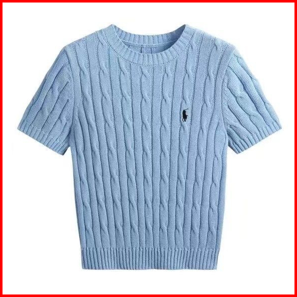Lady Collection - Polo Kaos Wanita Polos Kerah O Neck Rajut Singkat Pakaian Atasan Kemeja Knit Yang Langsing B03