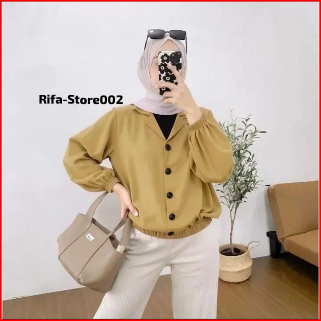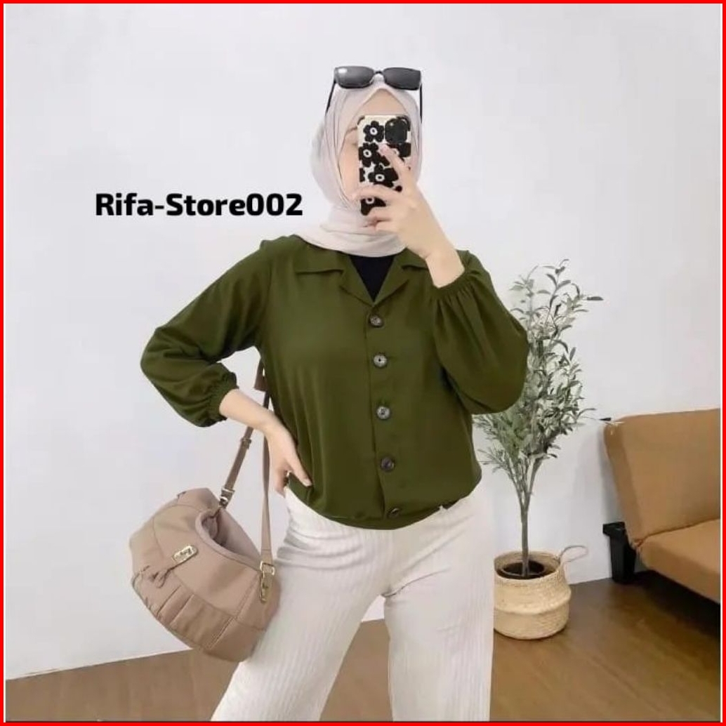 Blouse Cringkle Kancing Atas Tangan Karet Model Terbaru Atasan Wanita Polos Blouse Terbaru