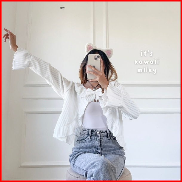 Rx Fashion - Kawai Ruffle Cardigan Pita Aprilia Cardy Outer Kawai Ruffle Ribbon Knit Rempel Coquette -pn