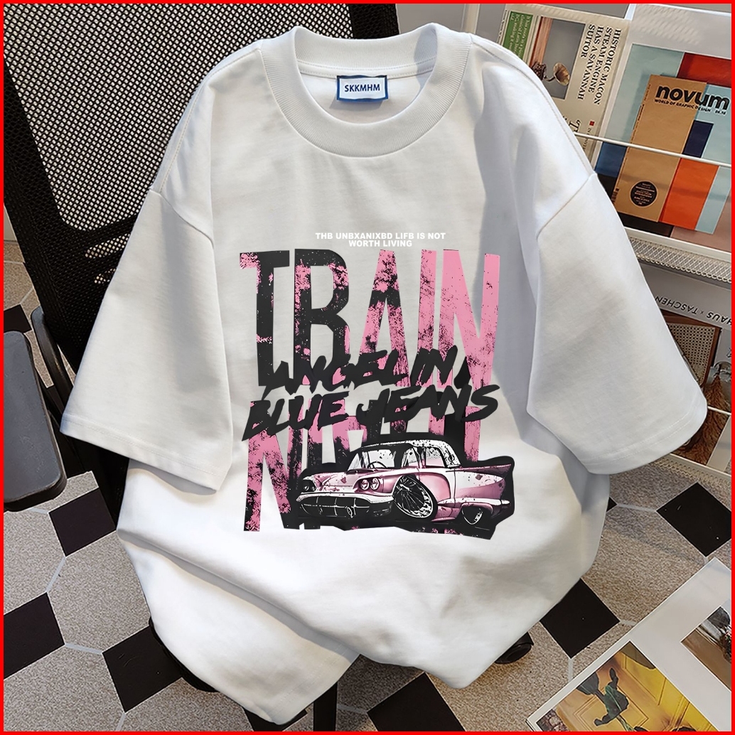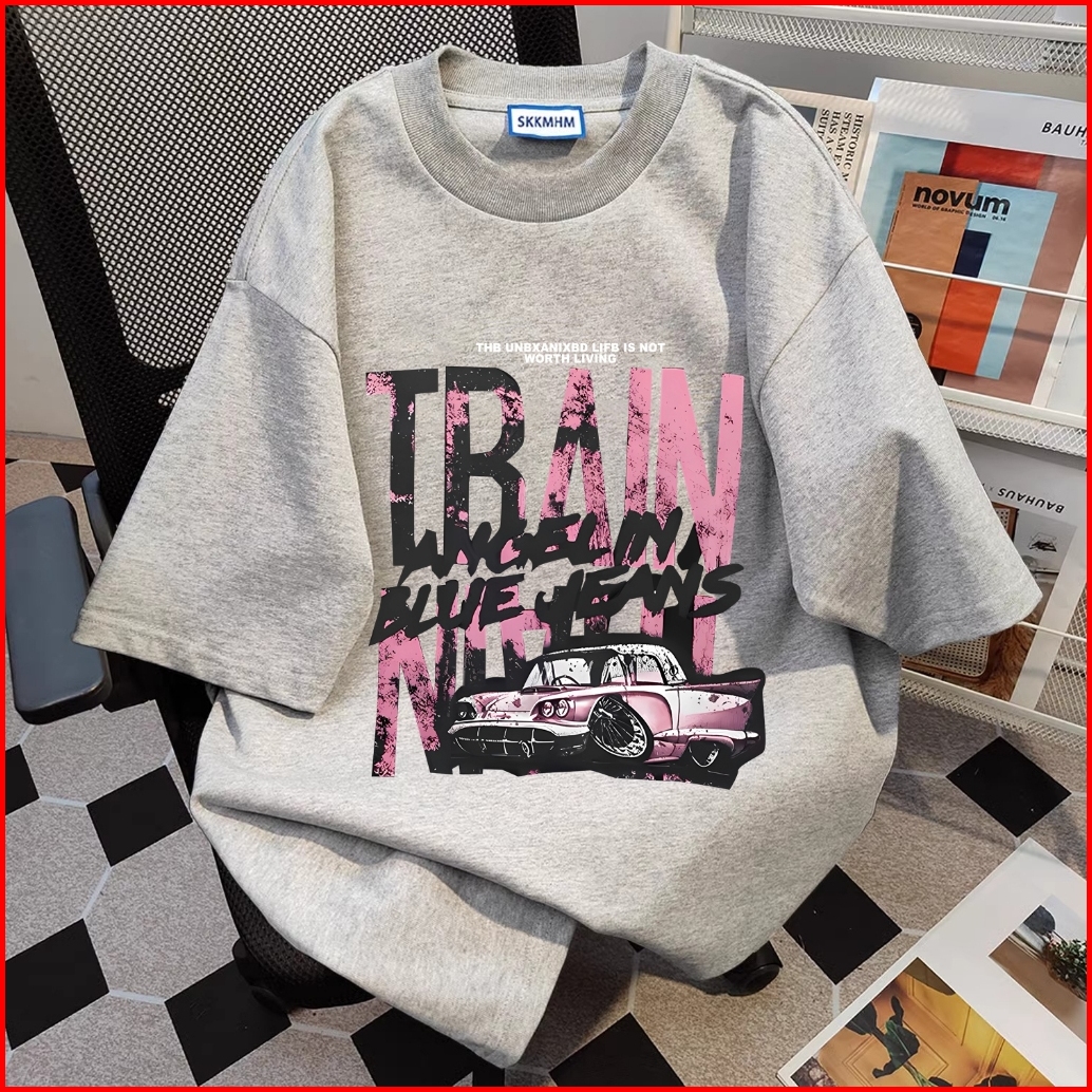 Tgns. 100 Cotton Kaos T Shirt Oversize Lengan Pendek Kaos Wanita Retro Car Graffiti Korean Style Wanita Top Kaos Baju Bi