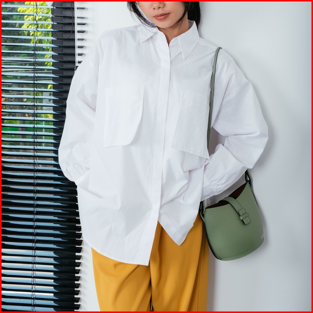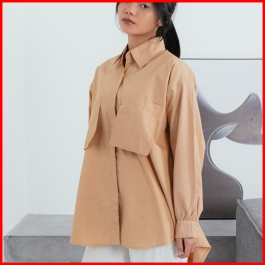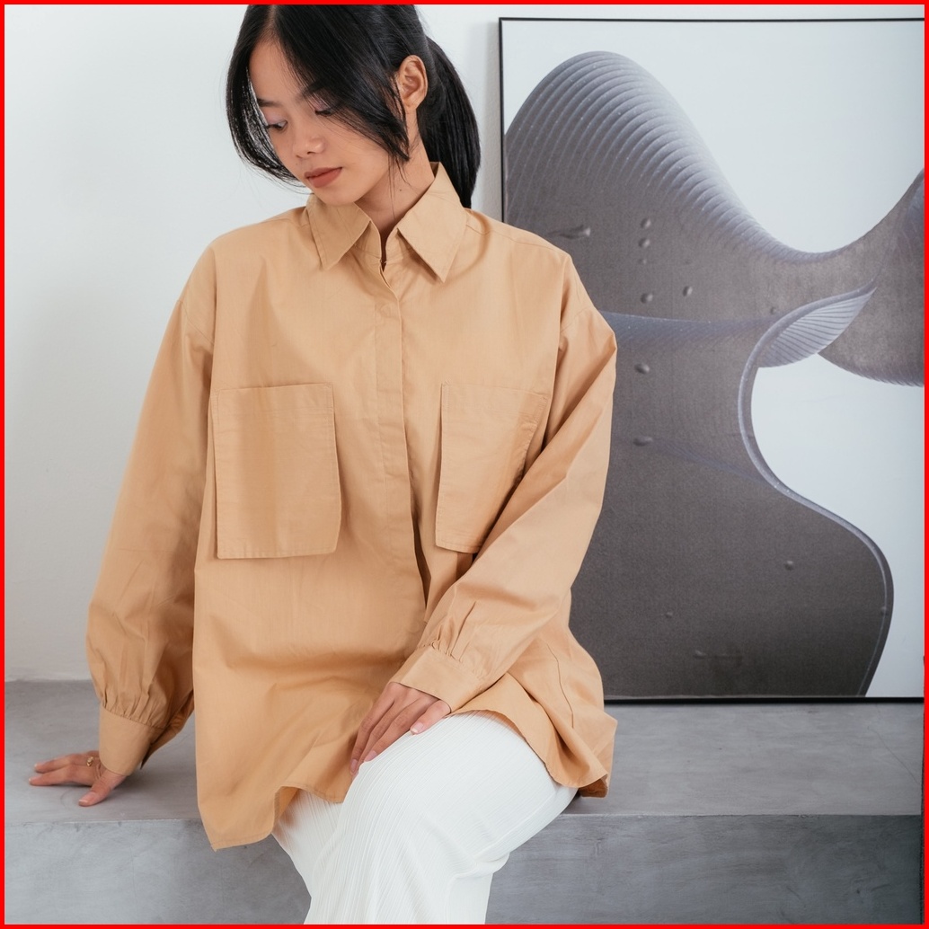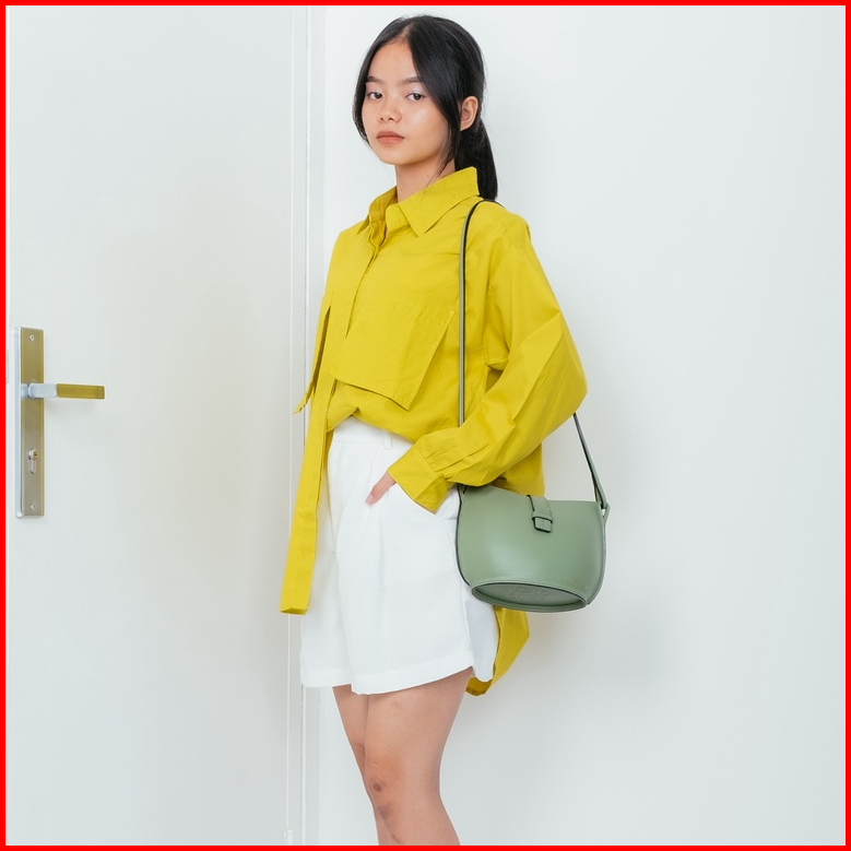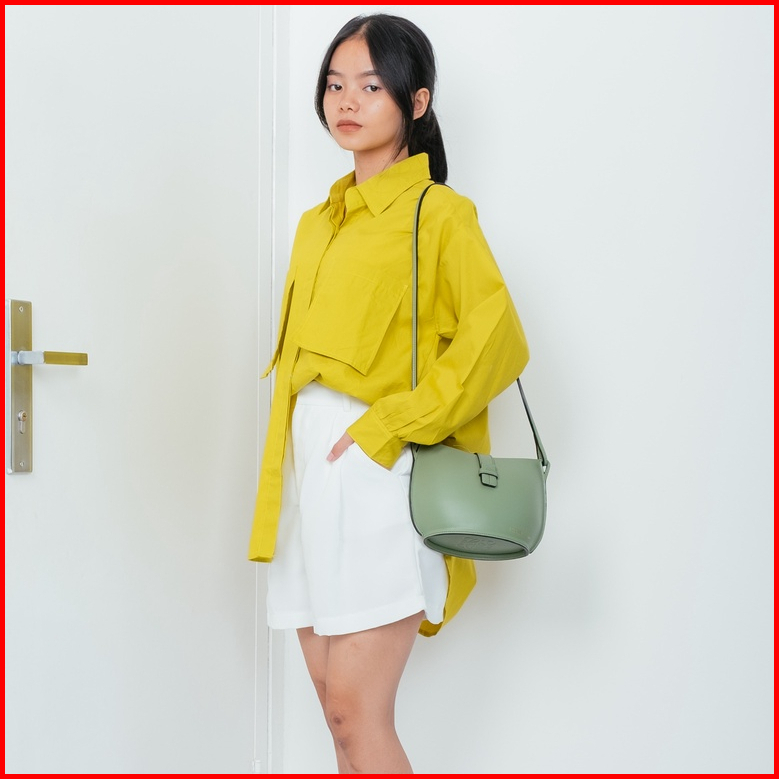 Girlstudio Blouse Atasan Wanita Kekinian Ellinor Top Hijab Friendly Brown Lime White 102028