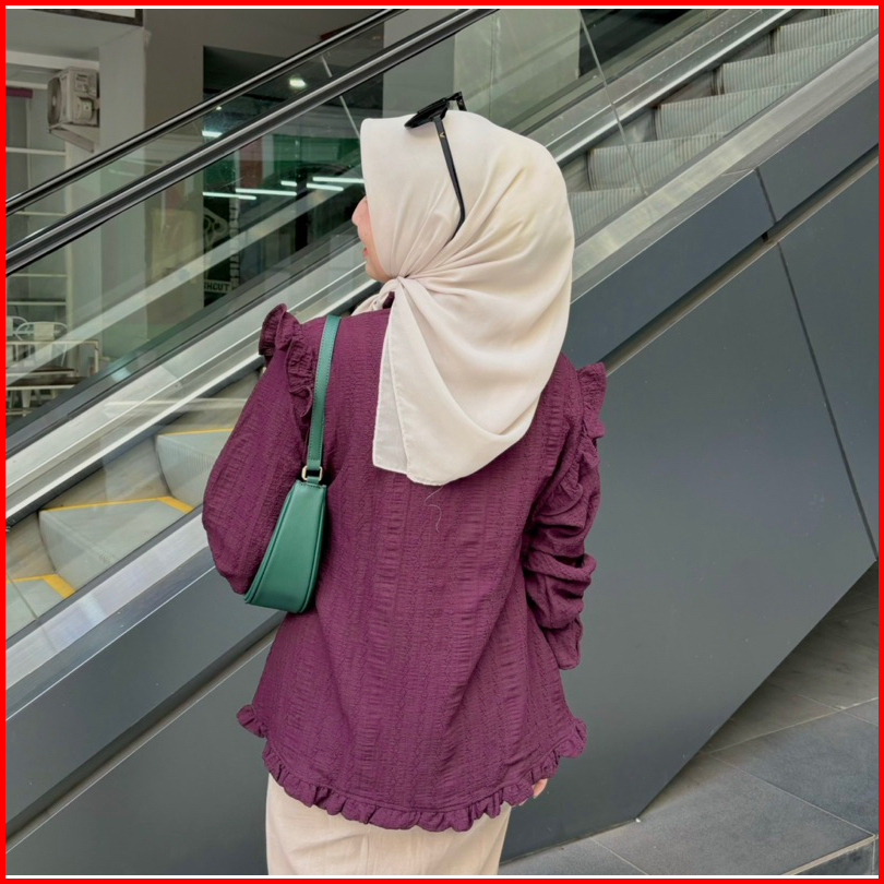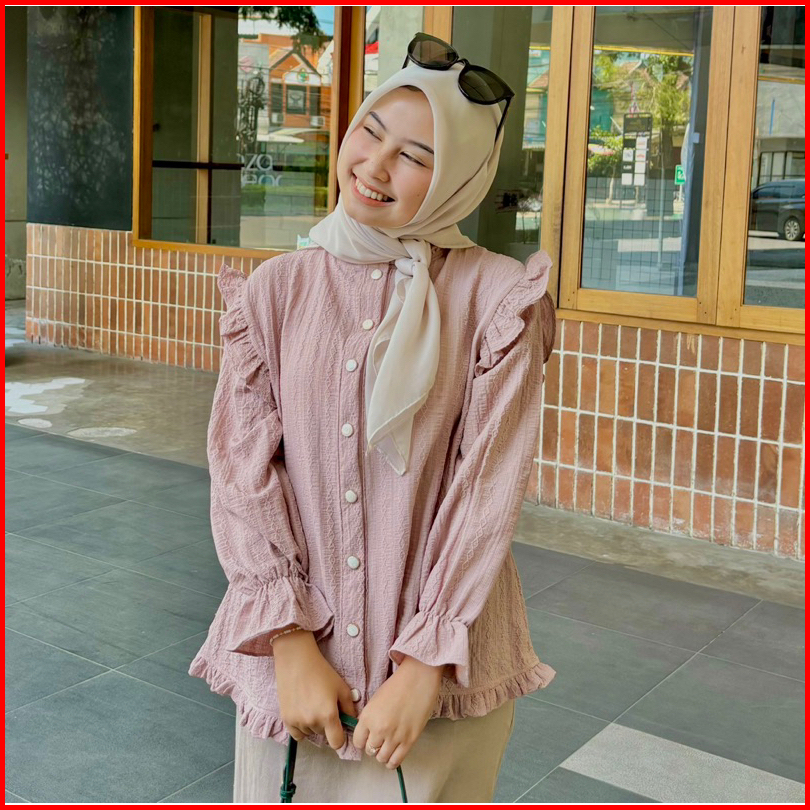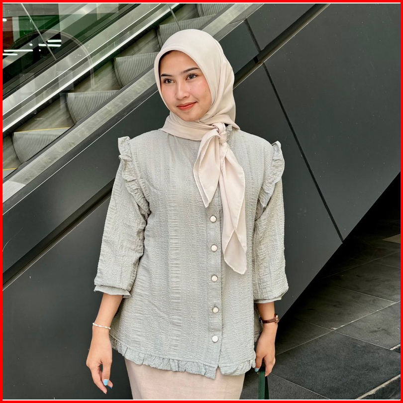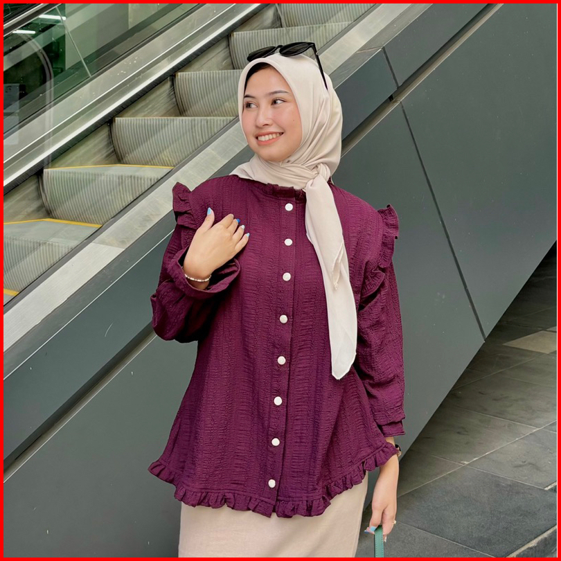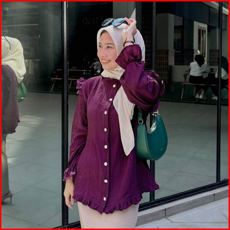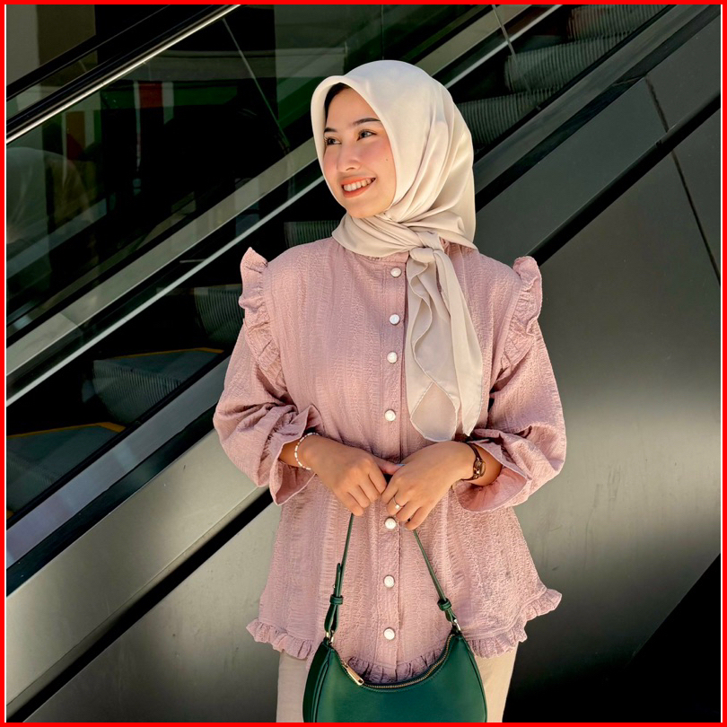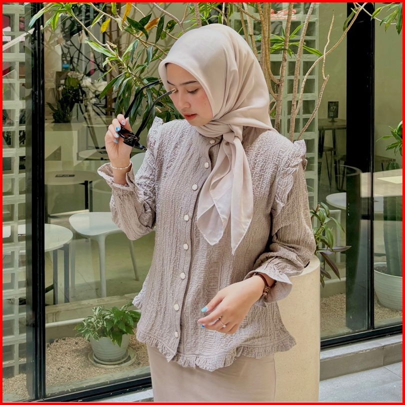 Shafira Top - Kemeja Casual Wanita Crinkle Bahan Adem Dan Nyaman Free Scrunchie Ikat Rambut