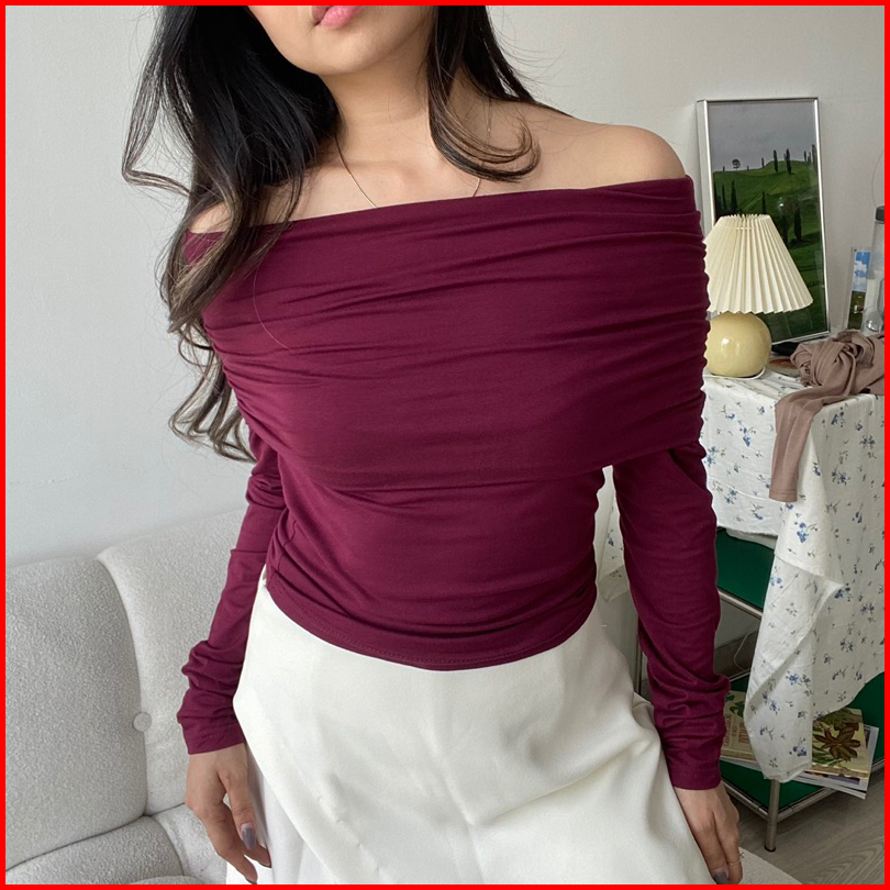 Ari Top Atasan Wanita Off Shoulder Atasan Lengan Panjang Wanita Off Shoulder Korean Top
