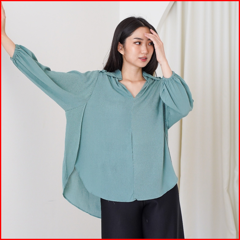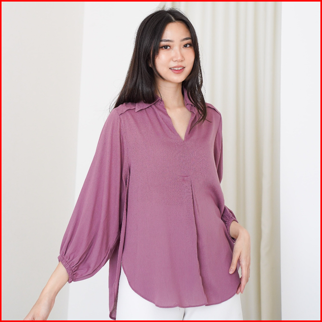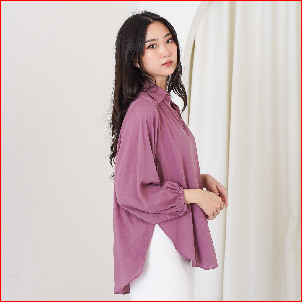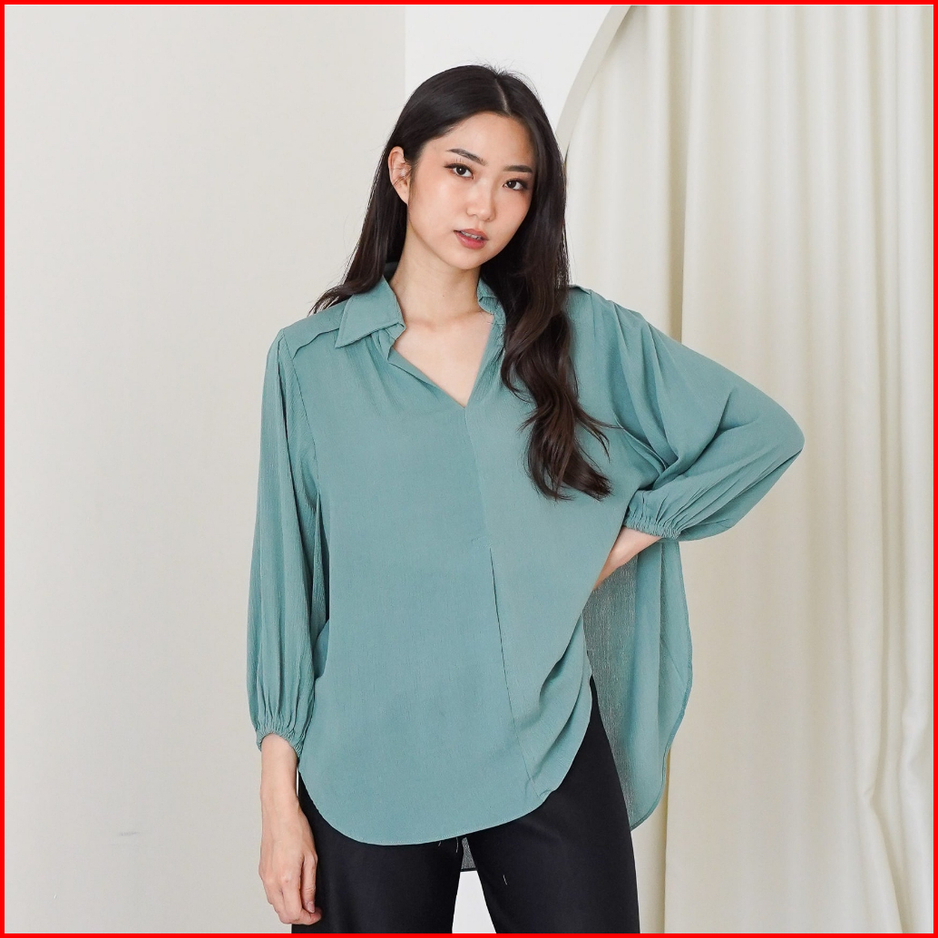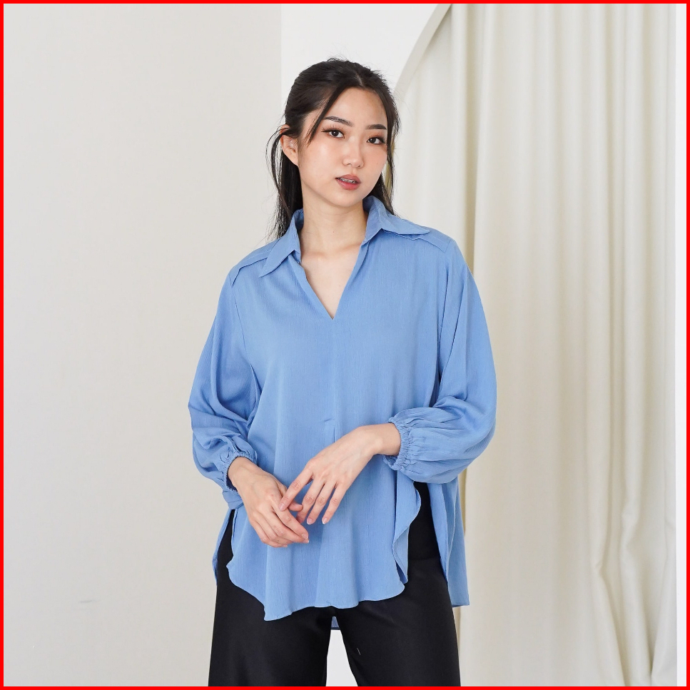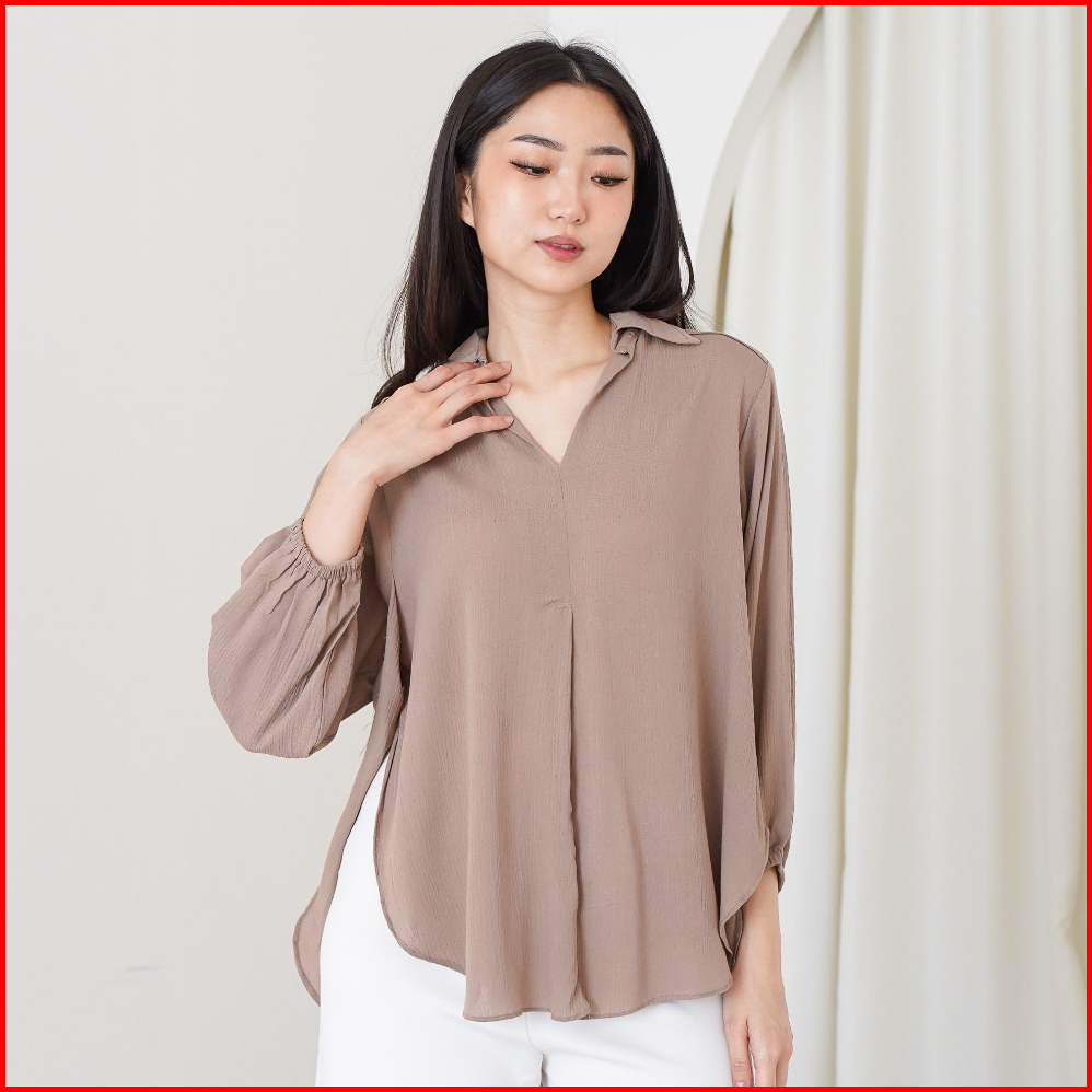 Severli Cassey Crinkle Blouse Wanita Korea Lengan Panjang Blouse Kerja Wanita Crinkle