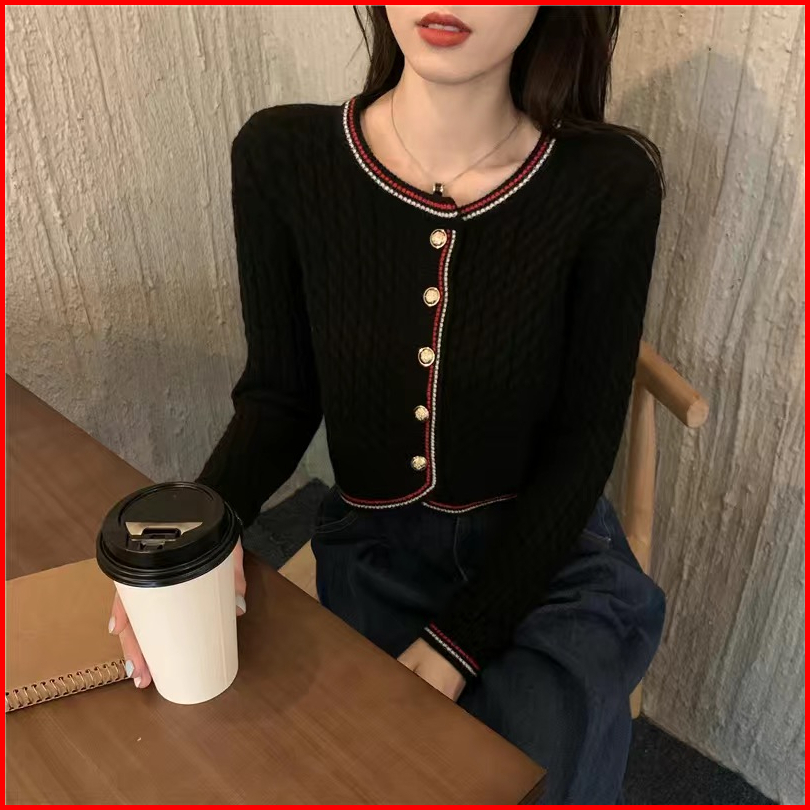 Clothesgalleryofficial Gaya Baru Kardigan Angin Harum Kecil Mantel Wanita Rajut Atasan Pendek Lembut Jepang