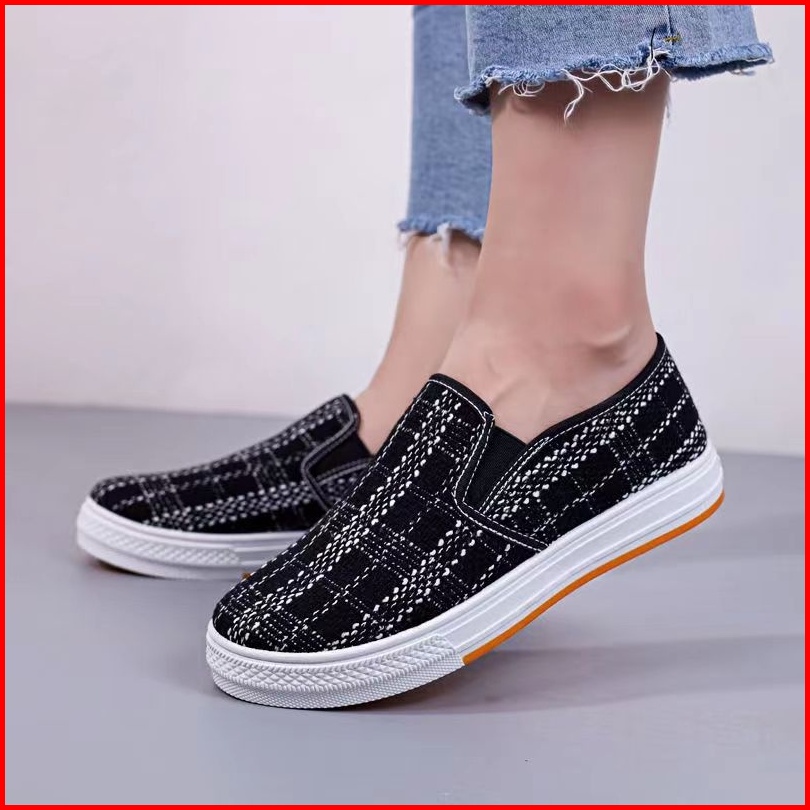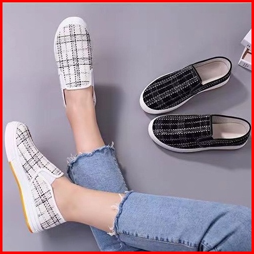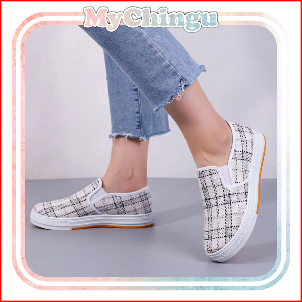 Chingu Sep026 Tanpa Kotak Sepatu Sneakers Wanita Hitam Putih Kasual Model Korea Fashion Casual Sport Olahraga Import
