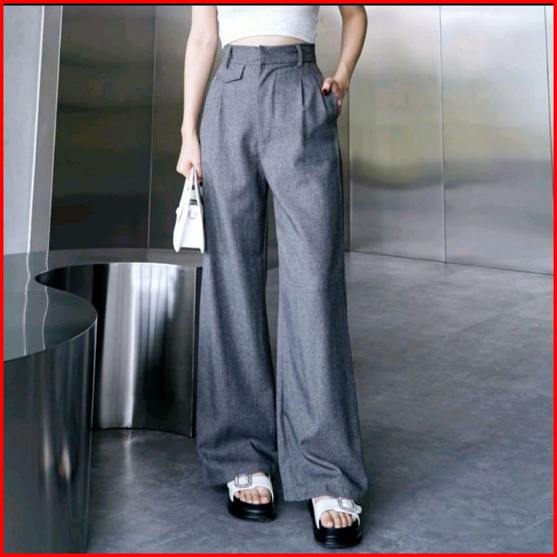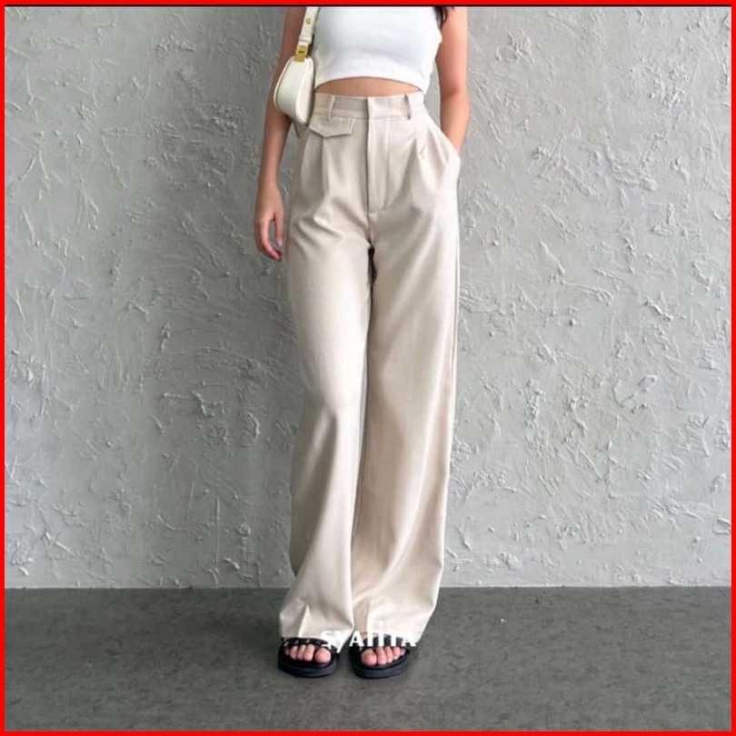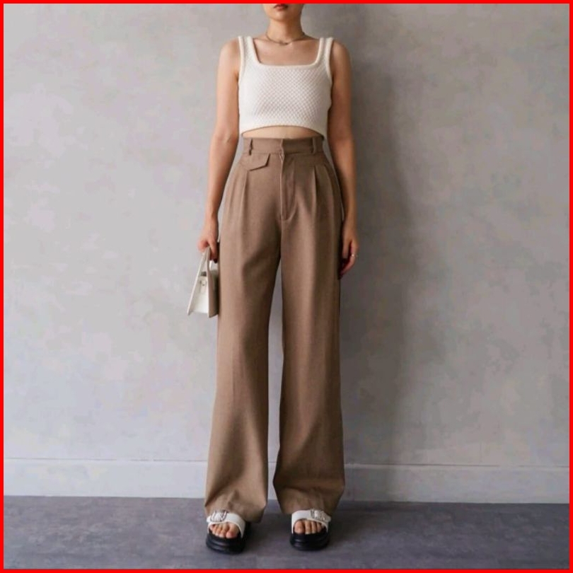 Oro Pants Celana Wanita Highwaist Panjang Kulot Bahan Anti Kusut Loose Pants Trouser Basic Kerja Korean Style