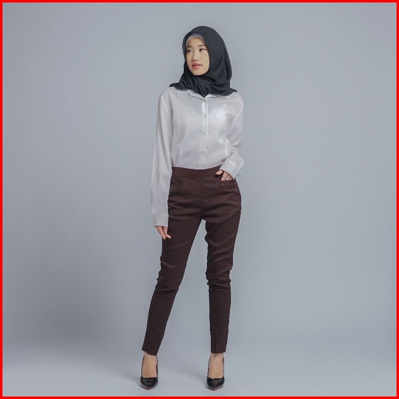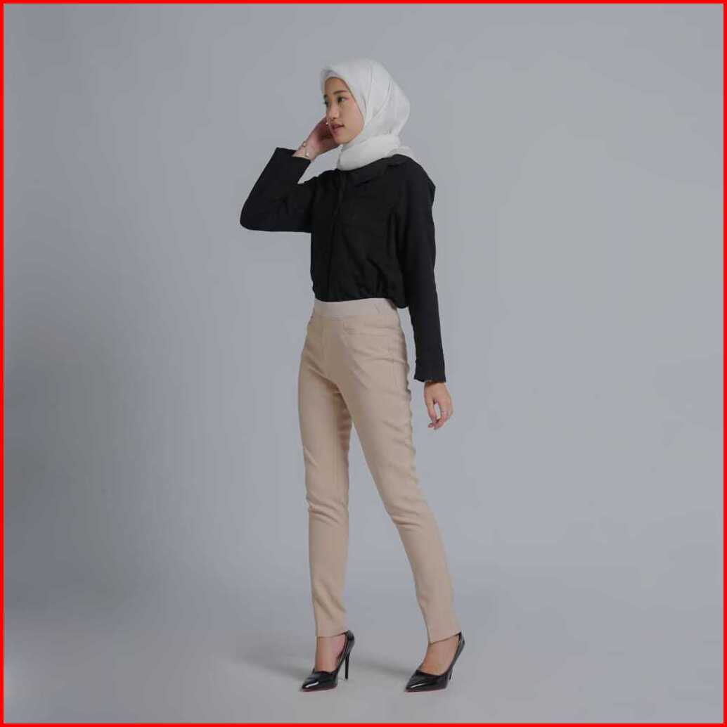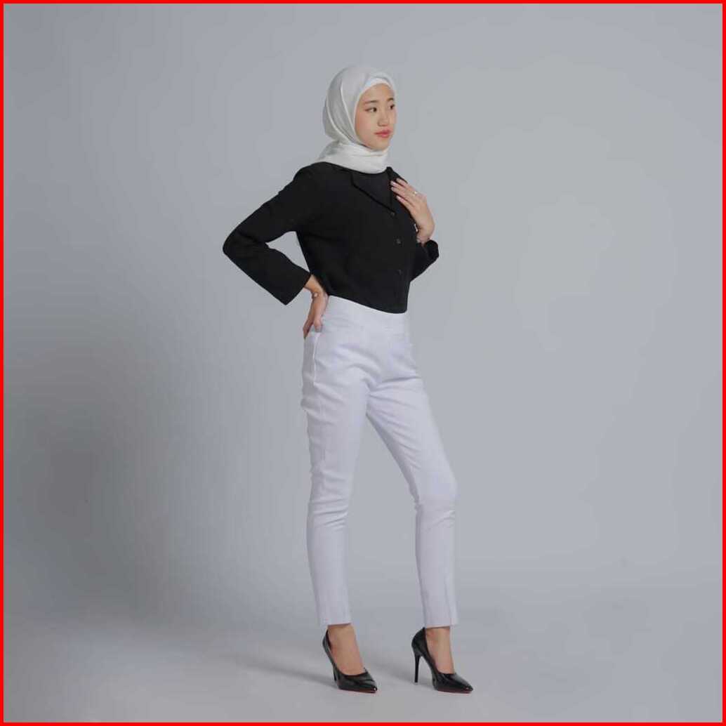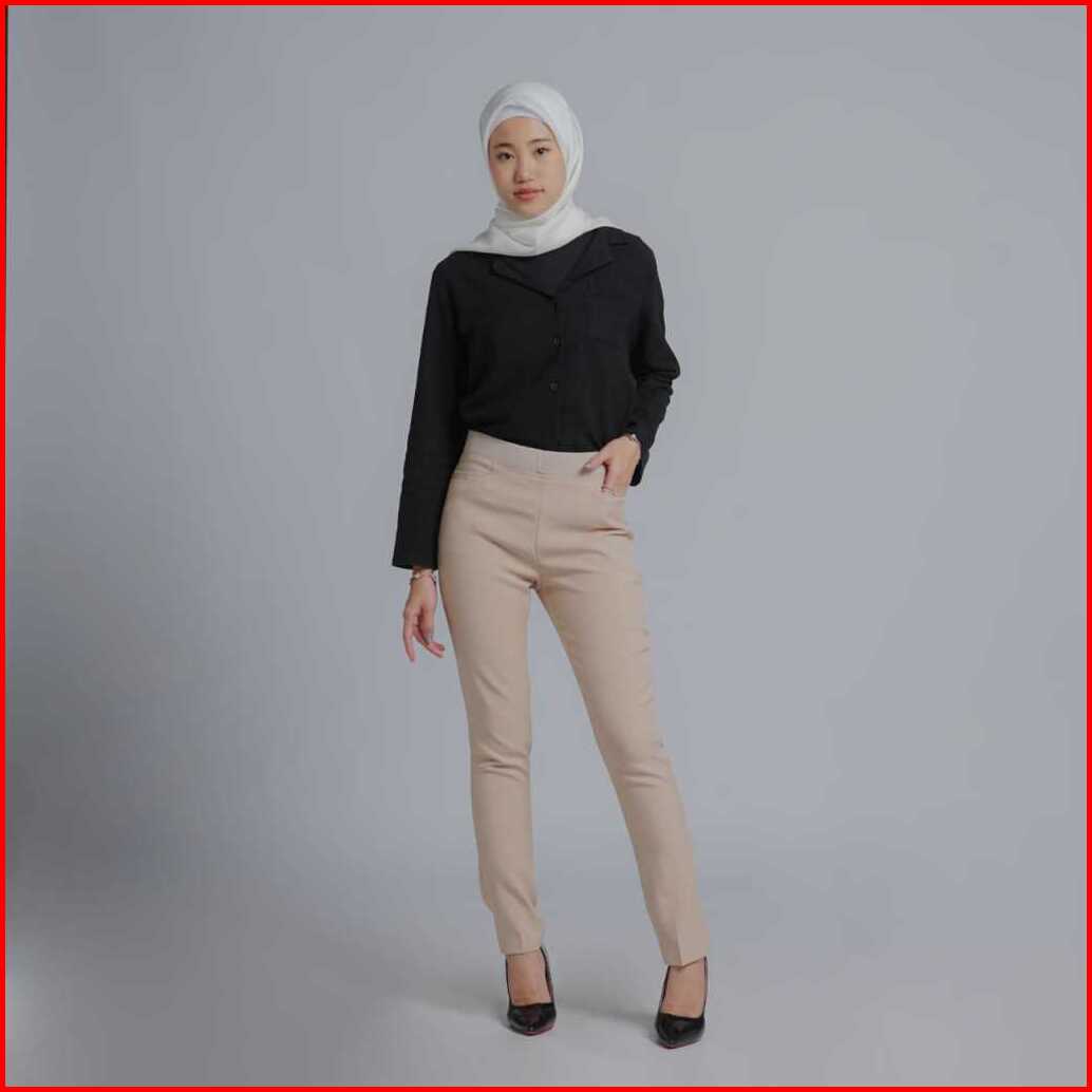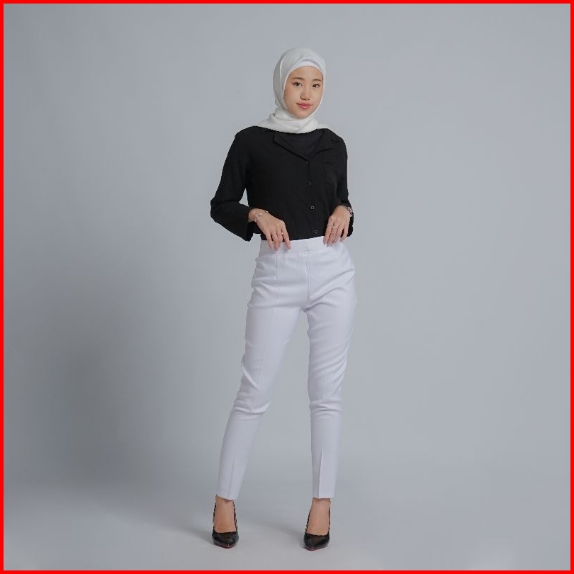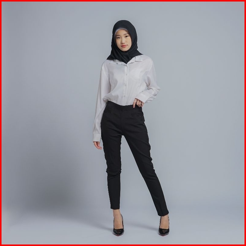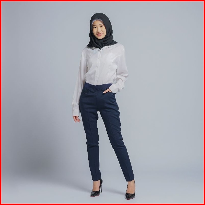 Celana Kerja Wanita Terbaru Slimfit Pinggang Karet Polyester Premium Stretch Import Navy Hitam Putih