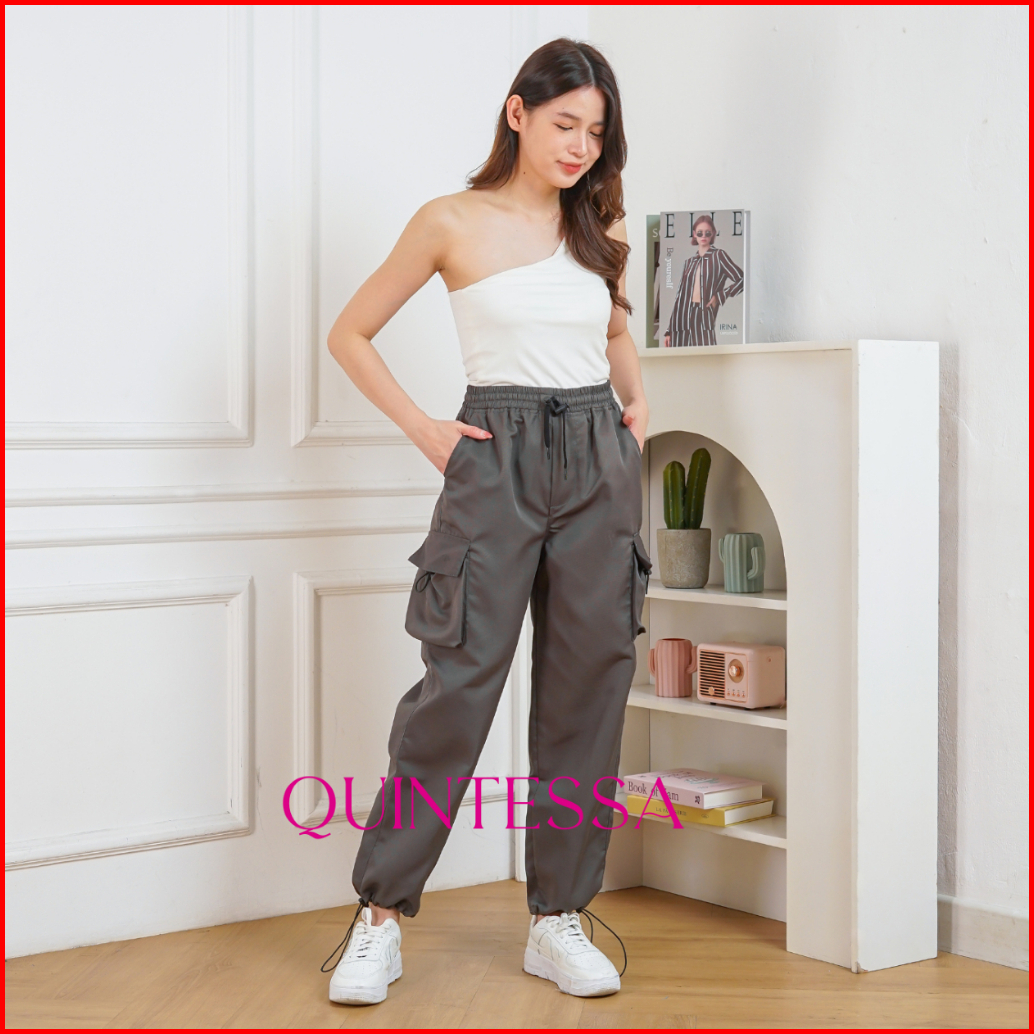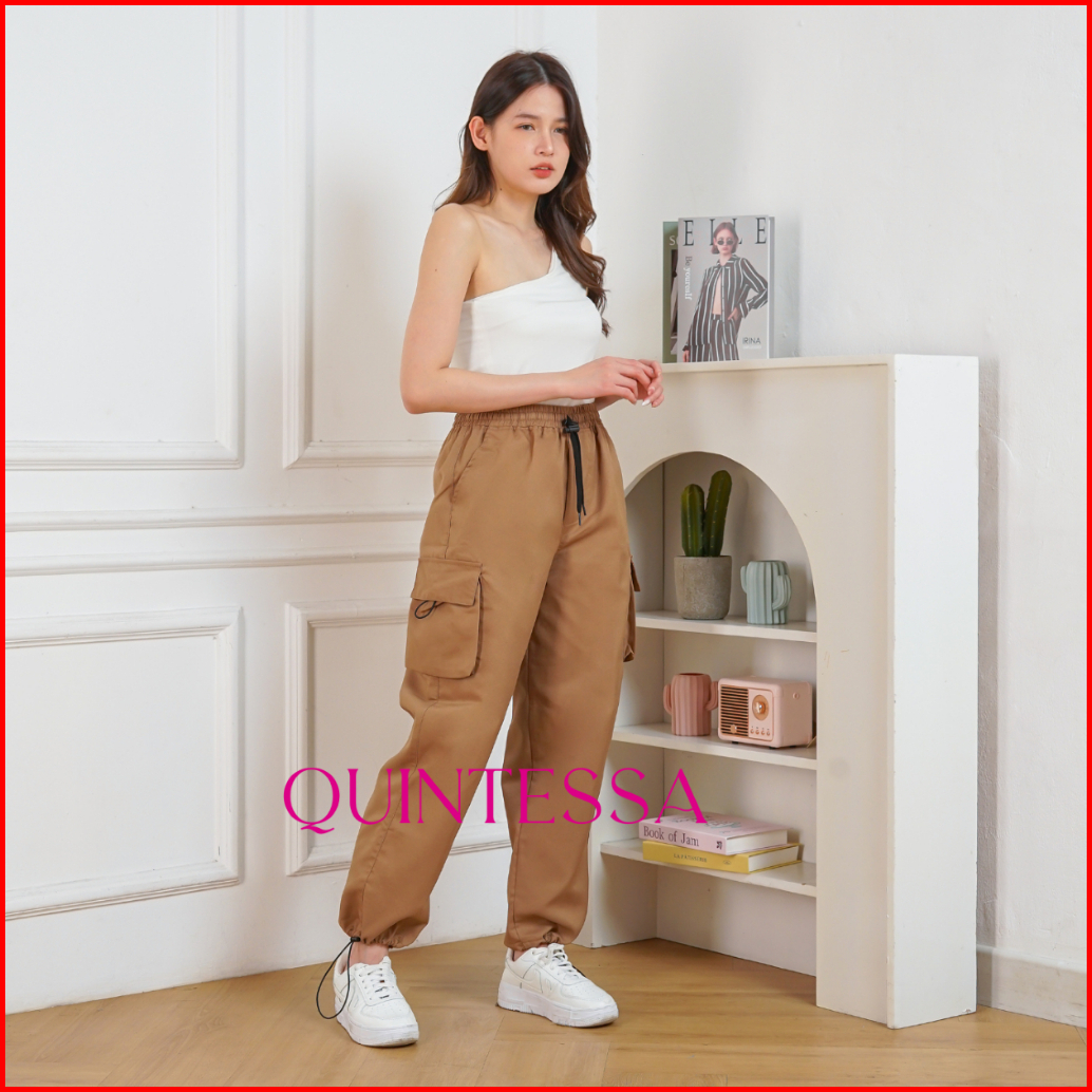Quintessa - Celana Cargo Wanita Highwaist Premium Cargo Loose Pants Korean Style Jumbo