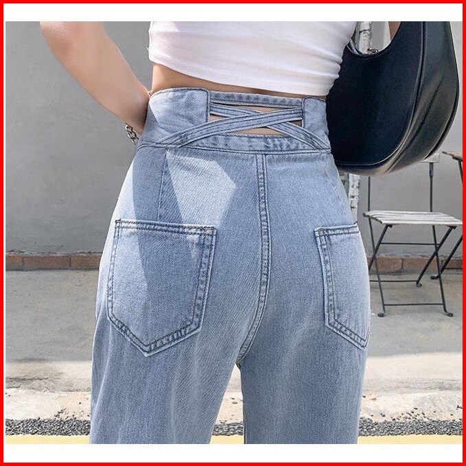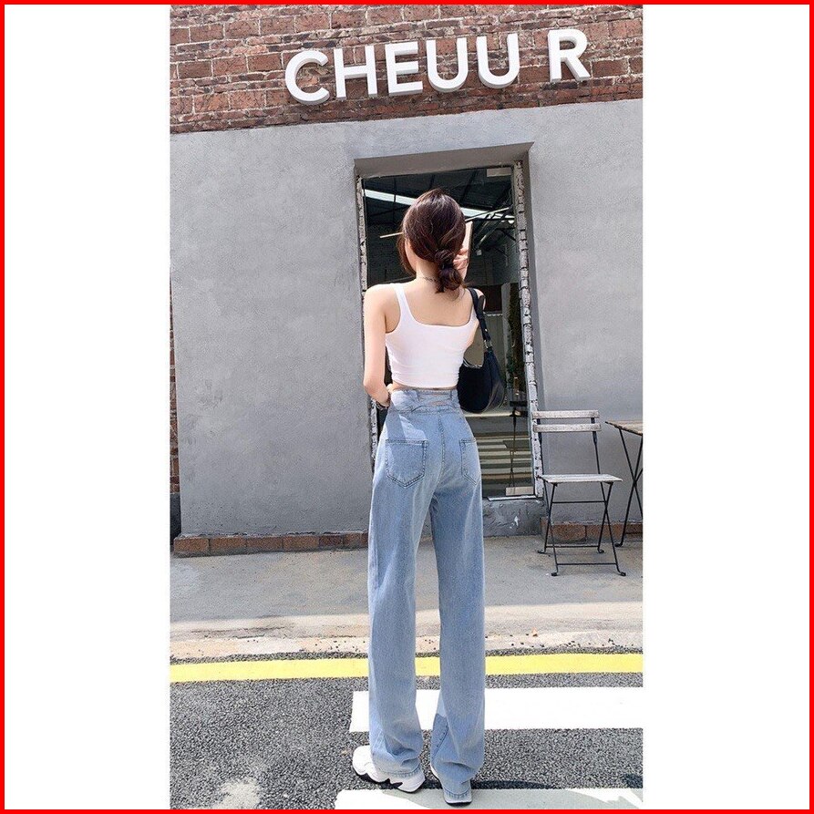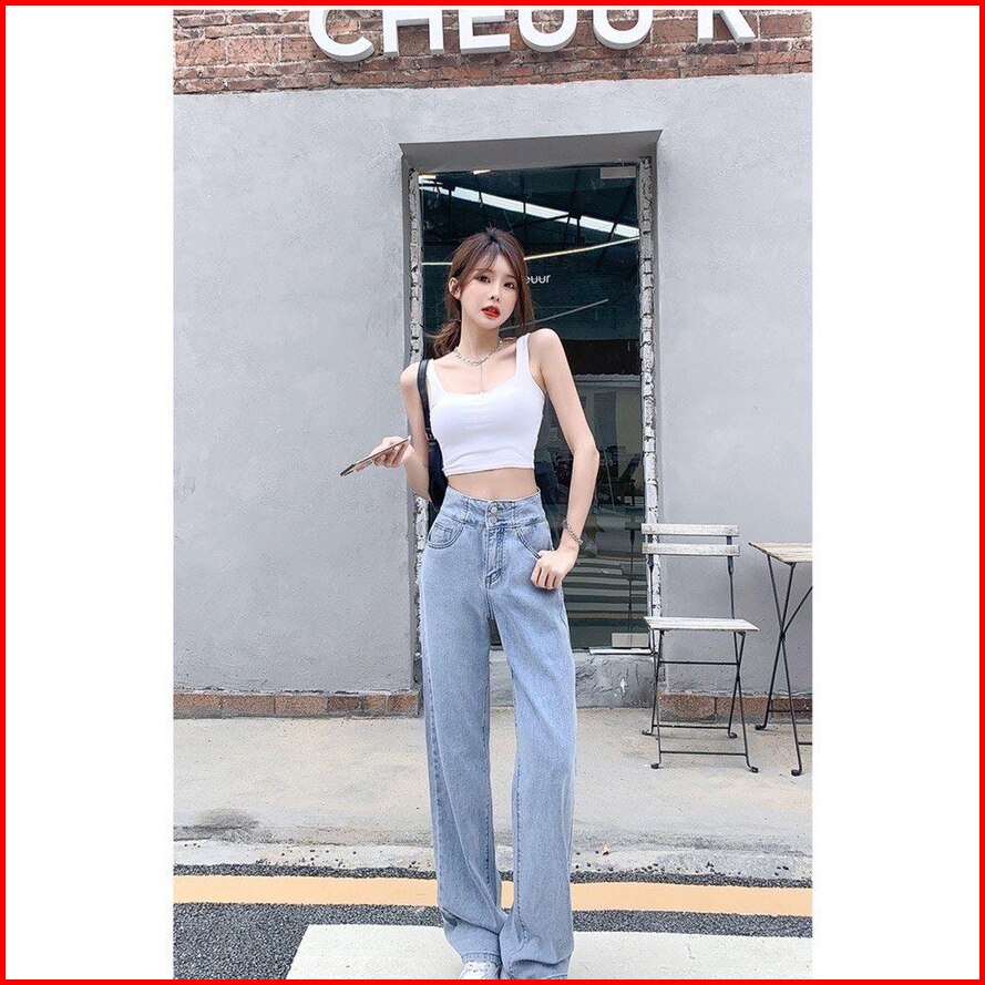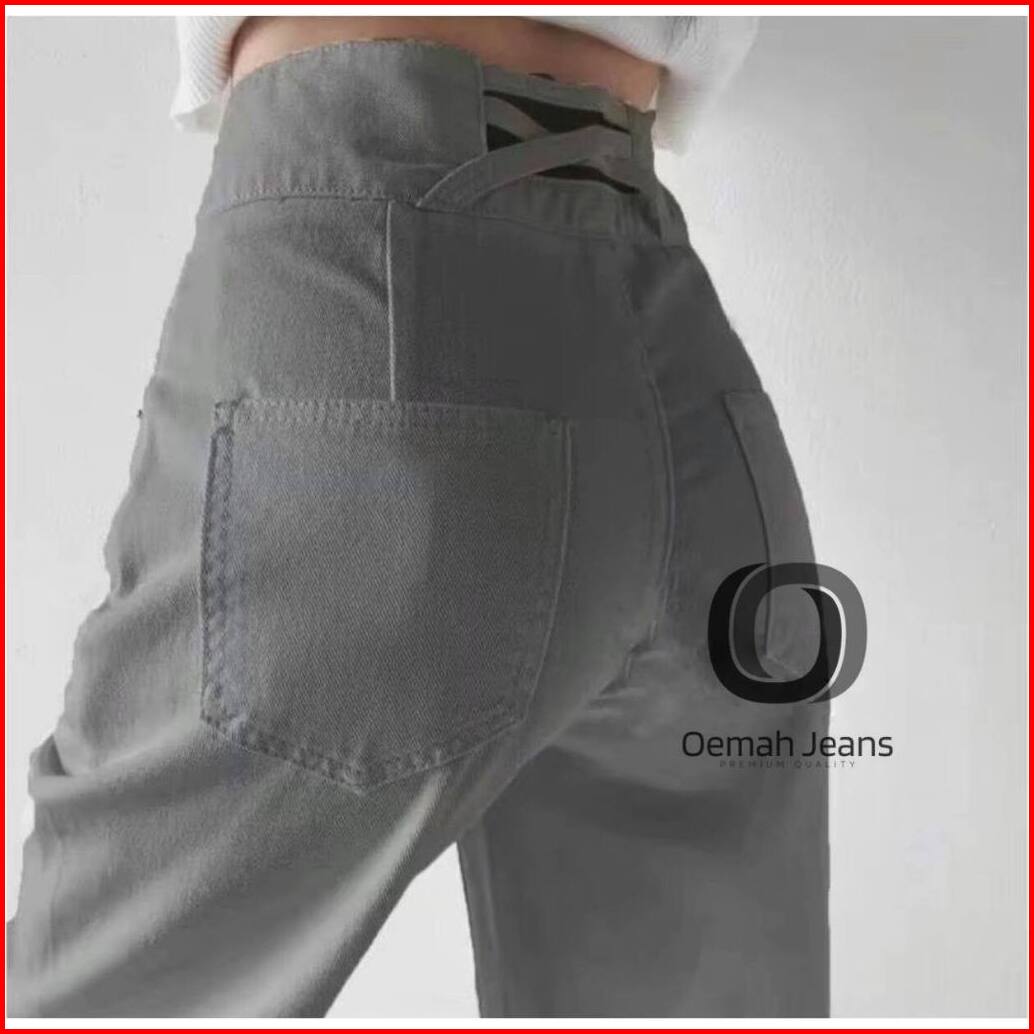 Maweth Celana Panjang Highwaist Kulot Jeans Wanita J23 Double Button 2 Kancing Ligh Blue Hitam