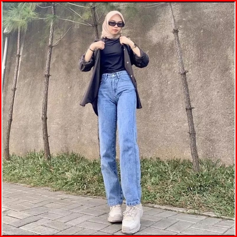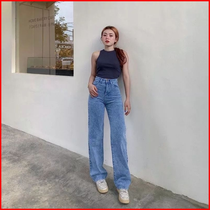 Celana Jeans Wanita Loose Highwaist - Celana Jeans Kulot Boyfriend Style Korean