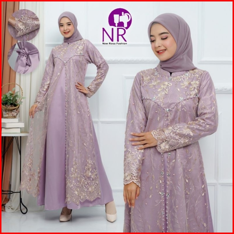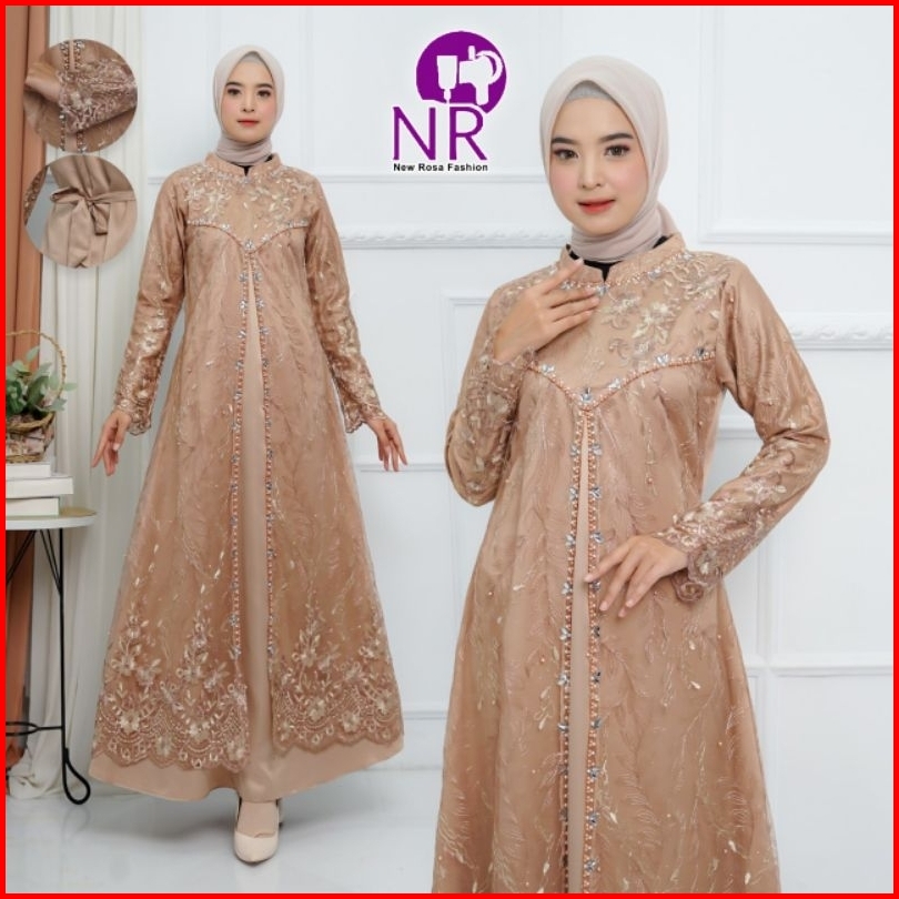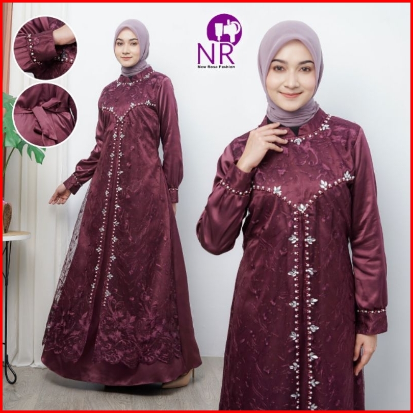 Vania Dress Series Baju Muslim Model Rompi Dengan Aksen Manik-manik Dan Full Payetan Di Dada Dan Di Rompi