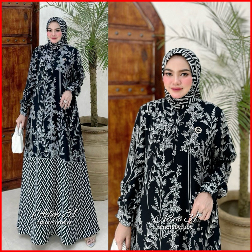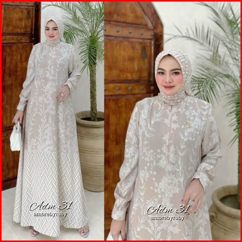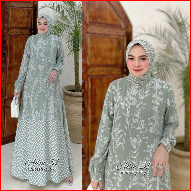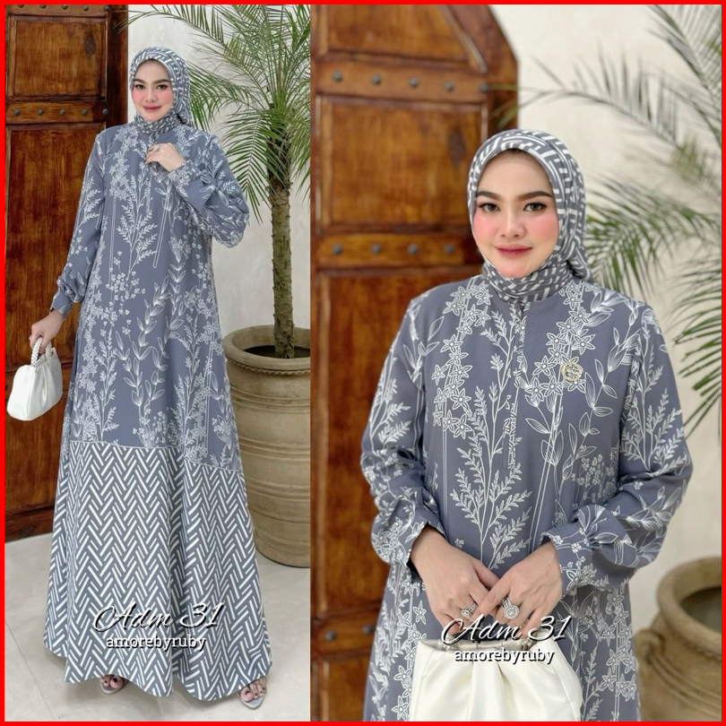 Adm 31 Dress Muslim Amore By Ruby Gamis Ceruty Motif Bunga Kekinian Viral Set Hijab Busui