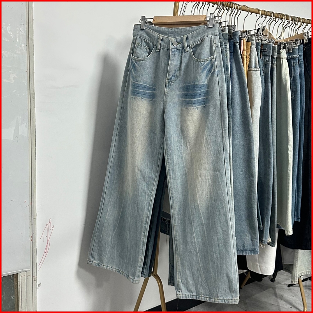 Tekstur Petir Celana Jeans Panjang Wanita Jeans Baggy Pants Celana Kulot Straight Jeans High Waist