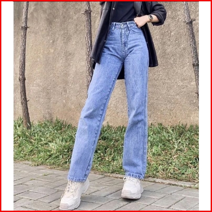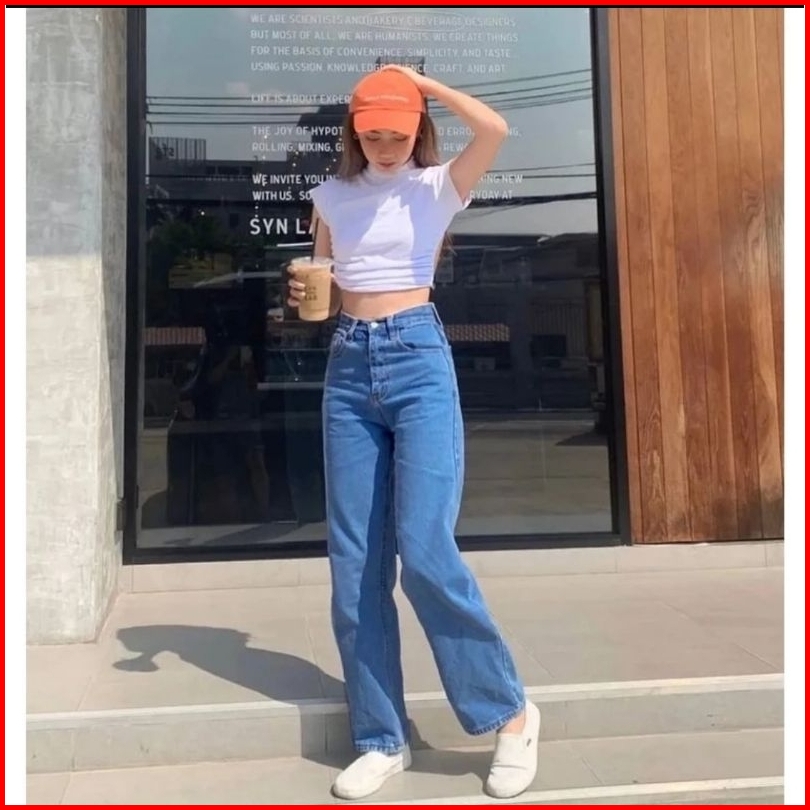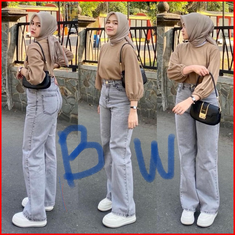 Bw Celana Hightwaist Jeans Wanita Korean Style Jeans Loose Wanita Celana Kekinian Size 27-34