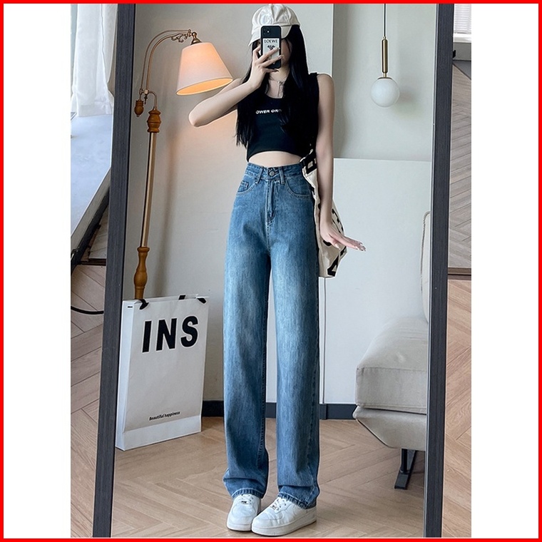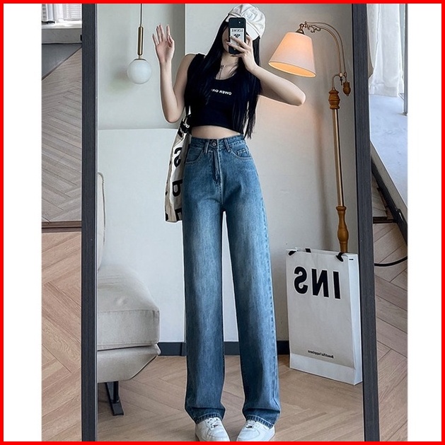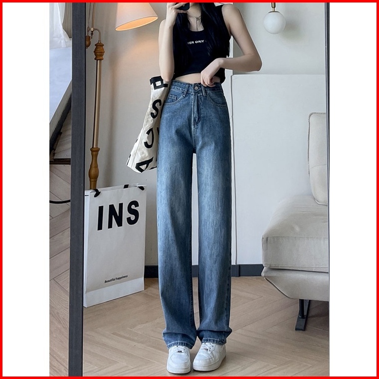 Jeans Biru Antik Wanita Celana Jeans Panjang Wanita High Waist Kulot Korean Style Longgar