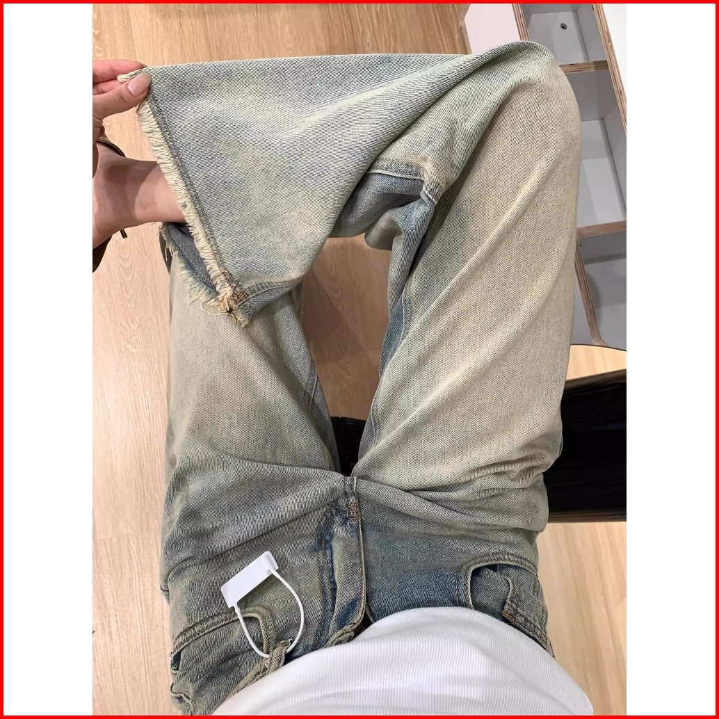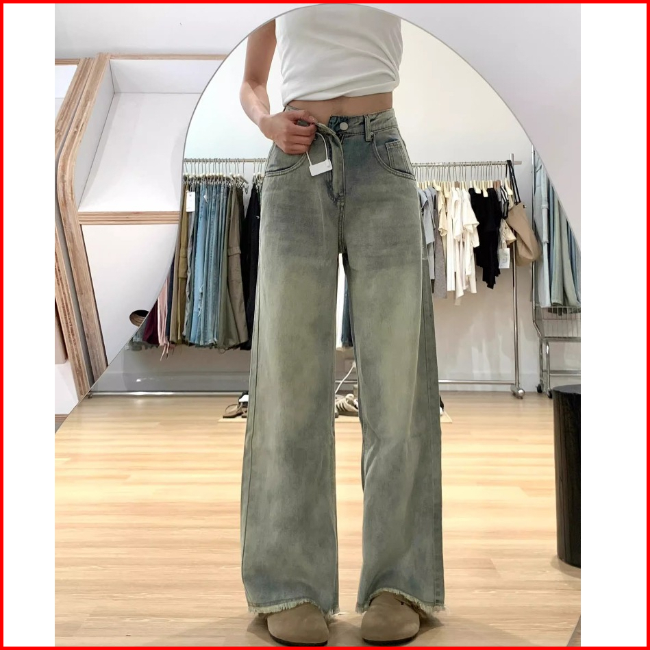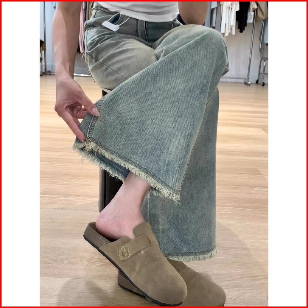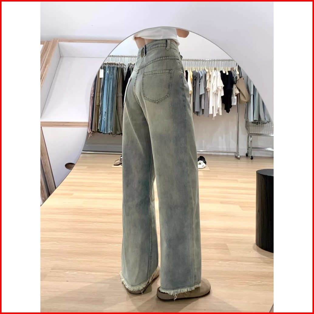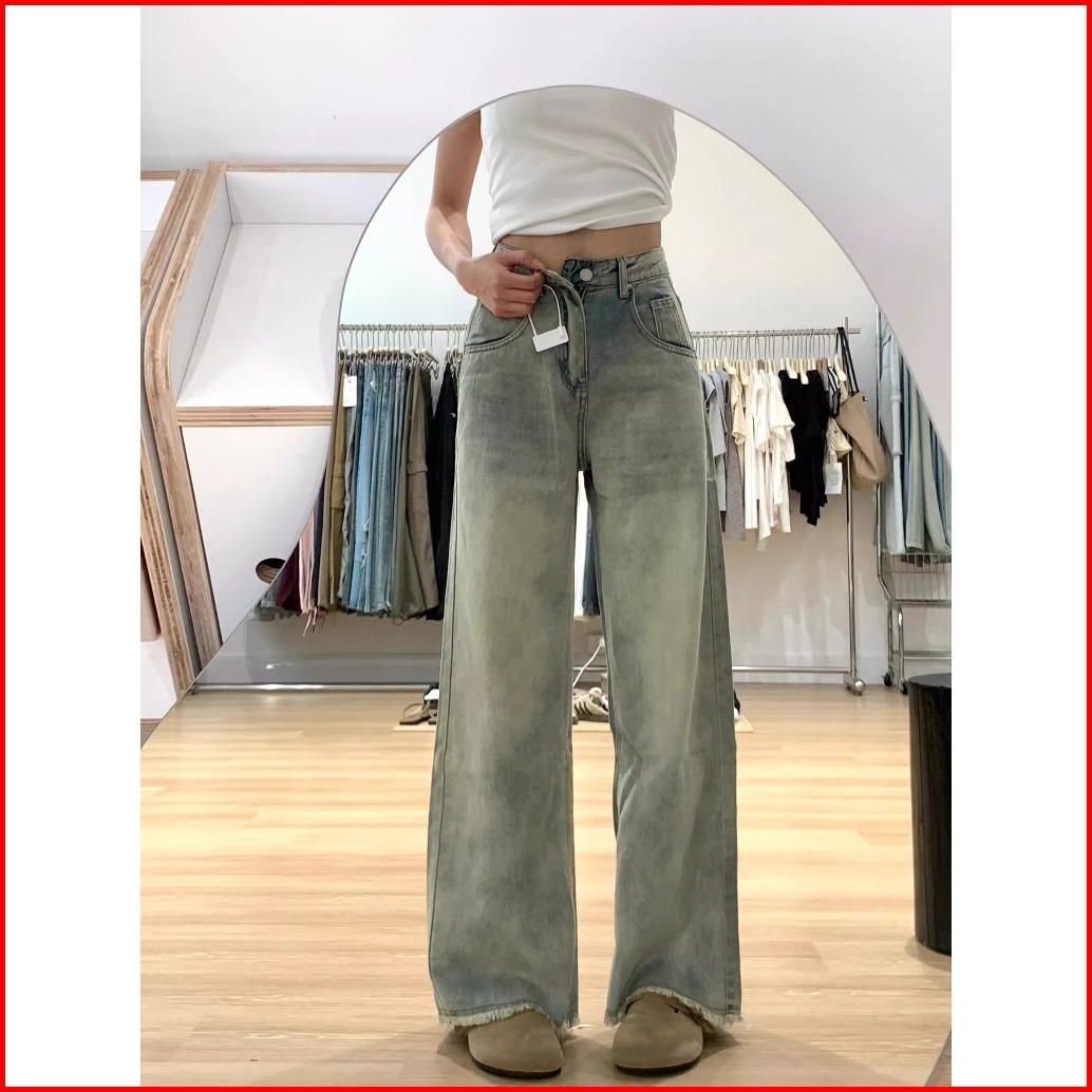 Kulot Longgar Berwarna Biru Retro Celana Jeans Tepi Mentah Longgar Pinggang Tinggi Gaya Korea Untuk Wanita Realpict