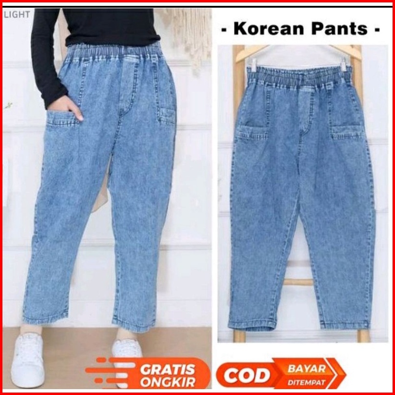 Monica Baggy Pants - Celana Baggy Pants Snow Celana Boyfriend Jeans Bahan Jeans Wash Celana Jeans Jumbo Sampe Bb 100kg