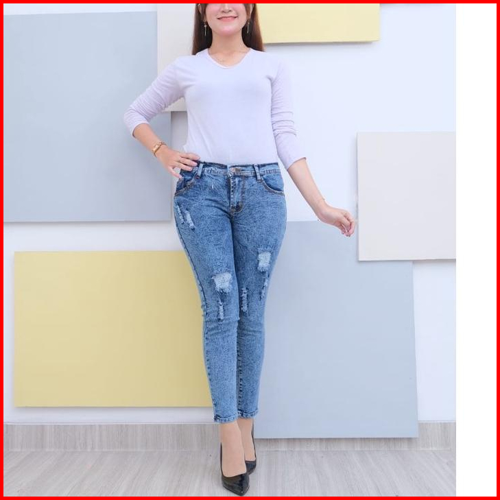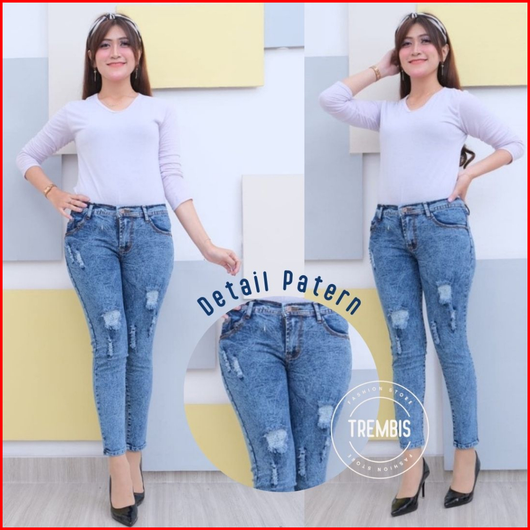 Tb - Celana Jeans Sobek Snow Distory Jeans Ripped Snow