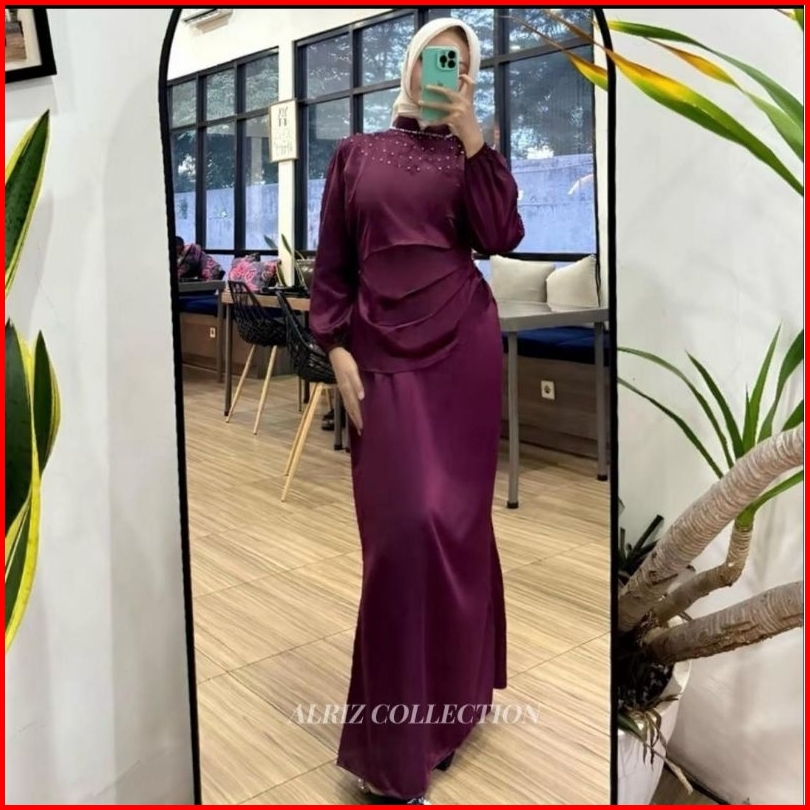 Vina Dress Spesial Burgundy Dress Kondangan Viral Termurah Gaun Kondangan Rok Duyung Baju Wanita Kekinian Gaun Pesta Ter