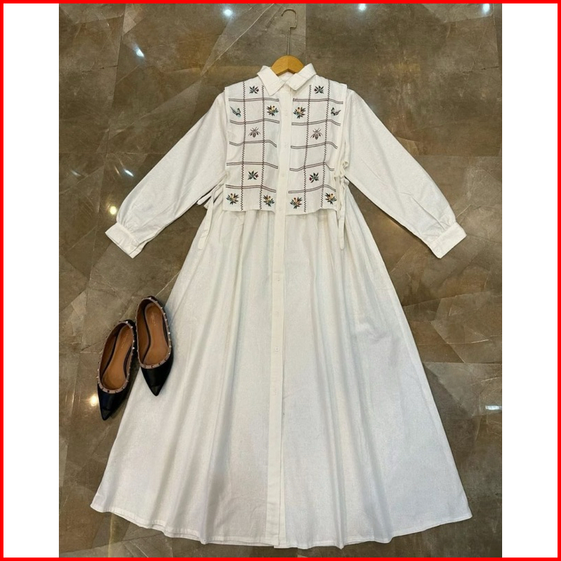 Karina Maxy Gamis Bahan Polo Linen Aplikasi Bordir Kancing Belakang Gamis Kekinian Model Terbaru Gamis Kondangan Mewah S