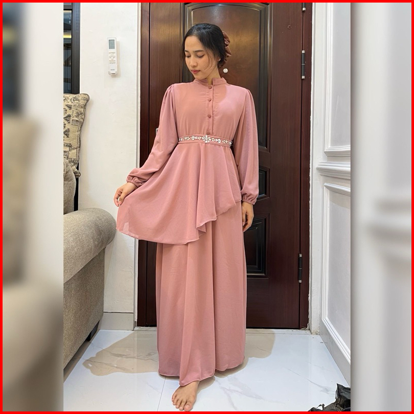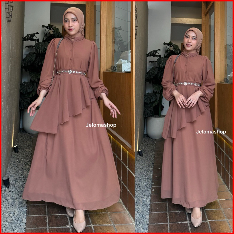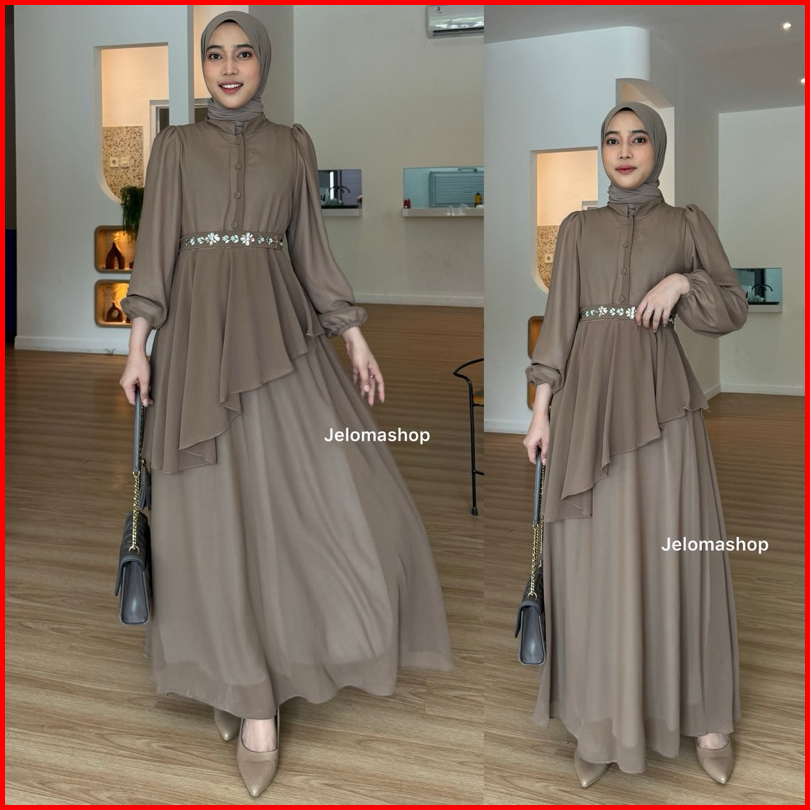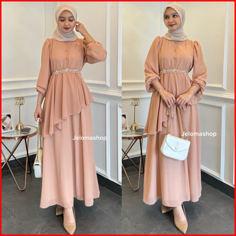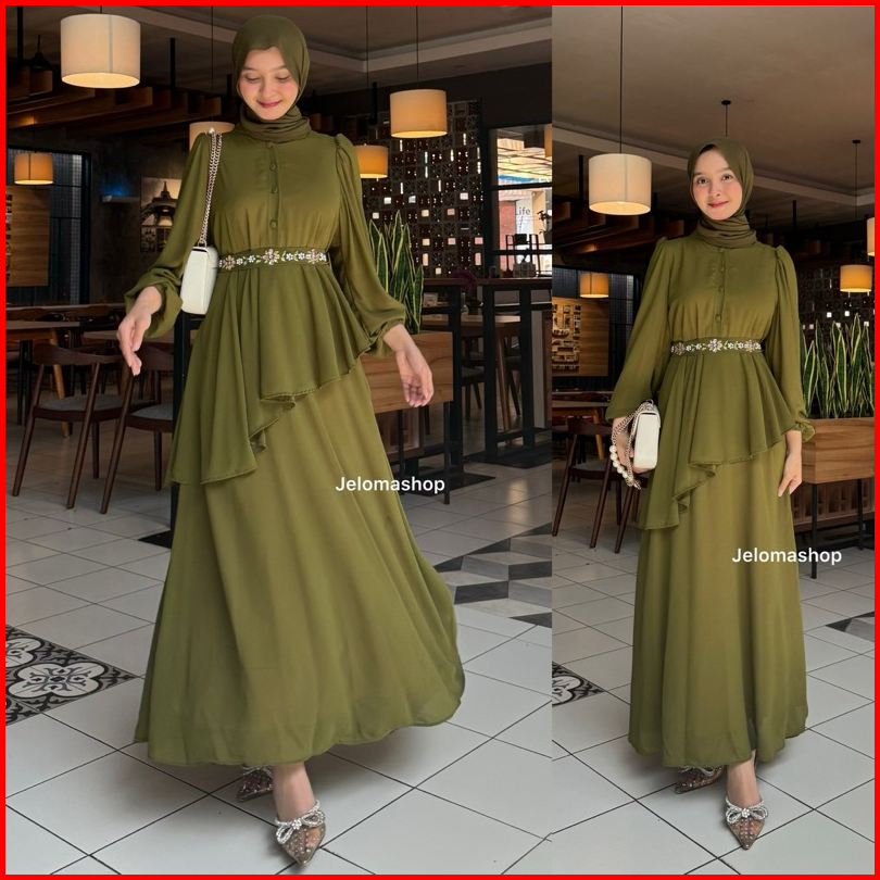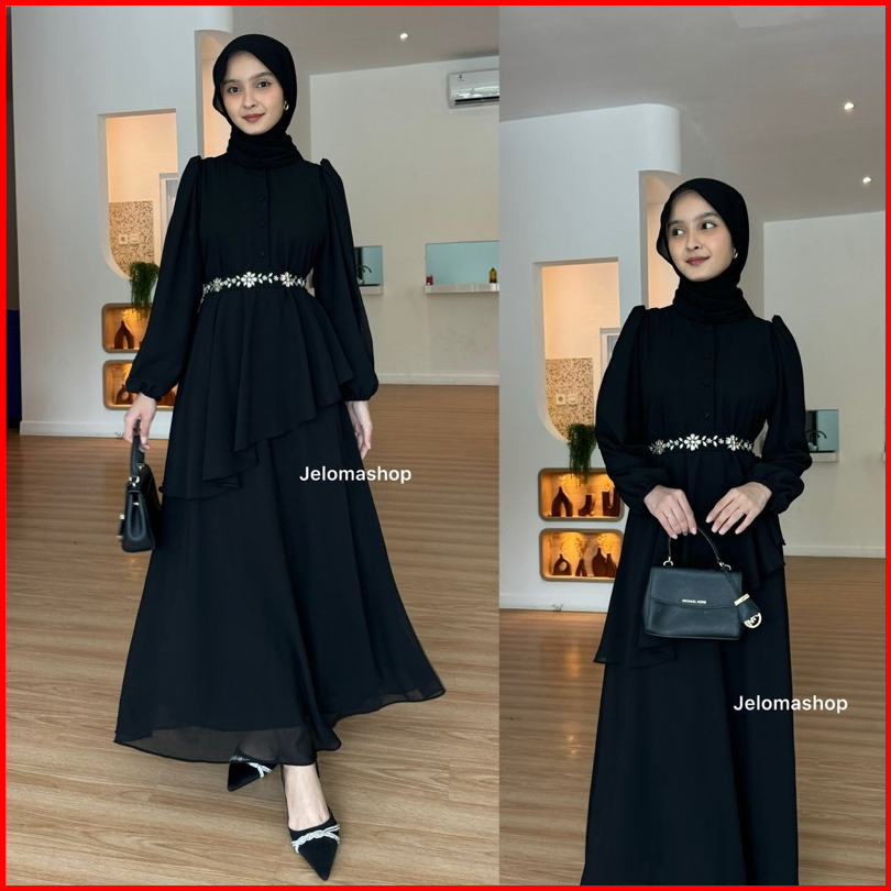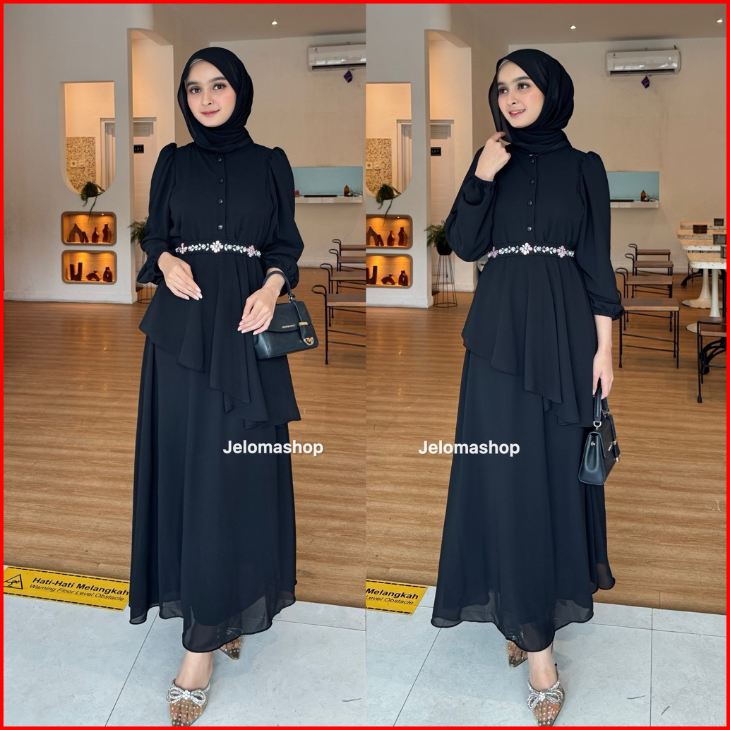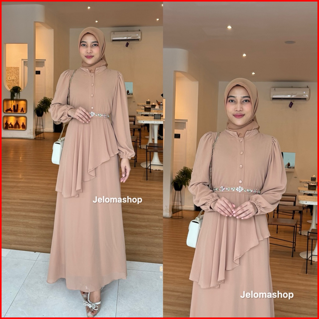 Vanya Dress Dress Ceruty Mix Payet Full Furing Gamis Lebaran Busui Friendly
