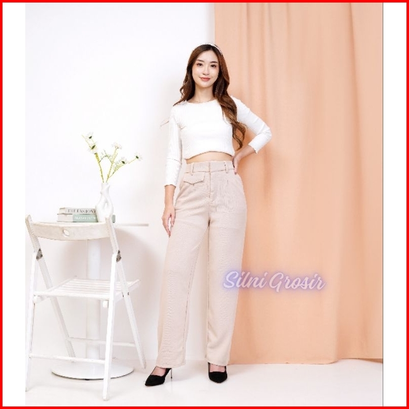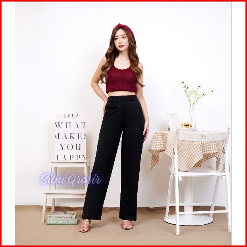 Silni Grosir - Oro Pants - Celana Loose Pants Knit Premium Trouser Wanita Highwaist