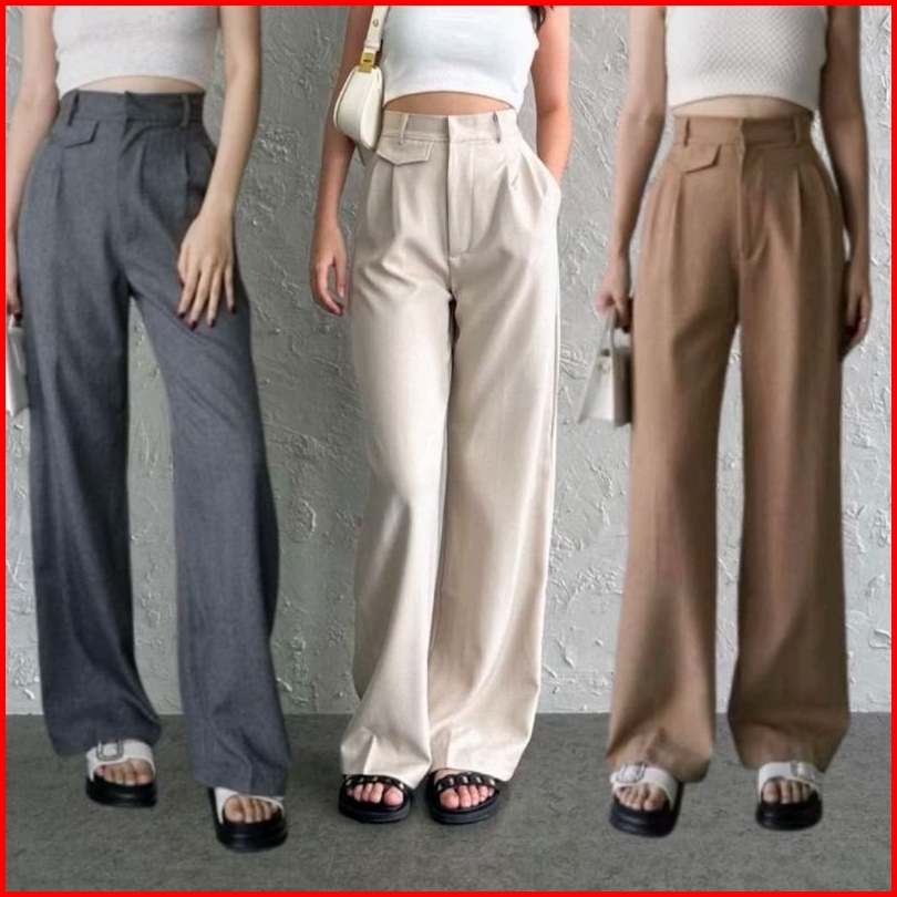 Oro Pants Knit Kekinian Highwaist Cullote Pants - Hitam Ivory Celana Panjang Korean Style Termurah