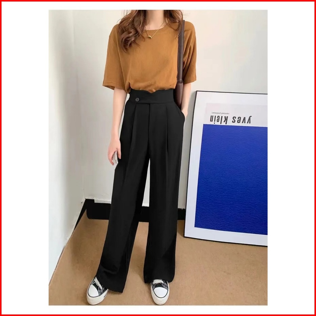 Celana Kantor Wanita Nyaman Elagan Dan Premium Bahan Jatuh Anti Kusut Warna Hitam Dan Abu-abu