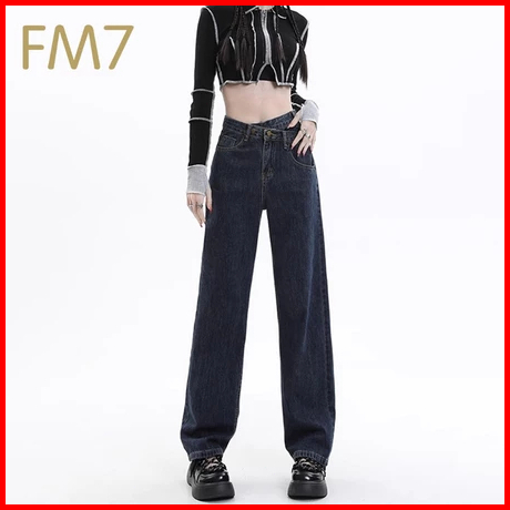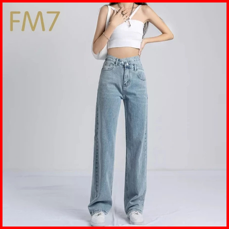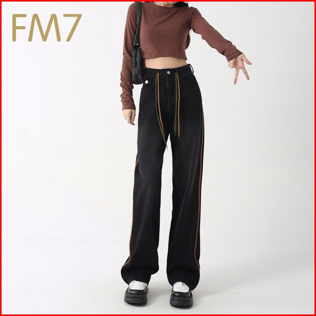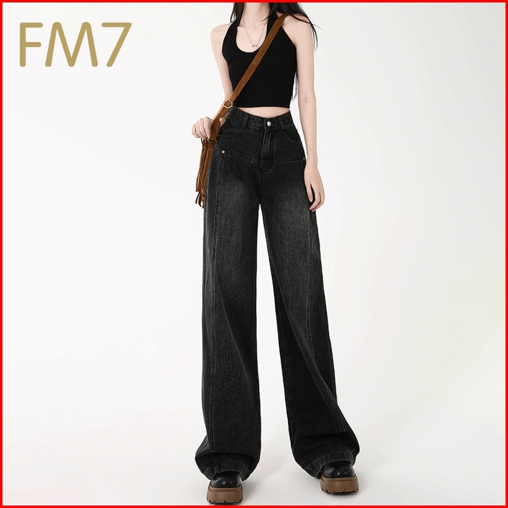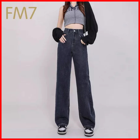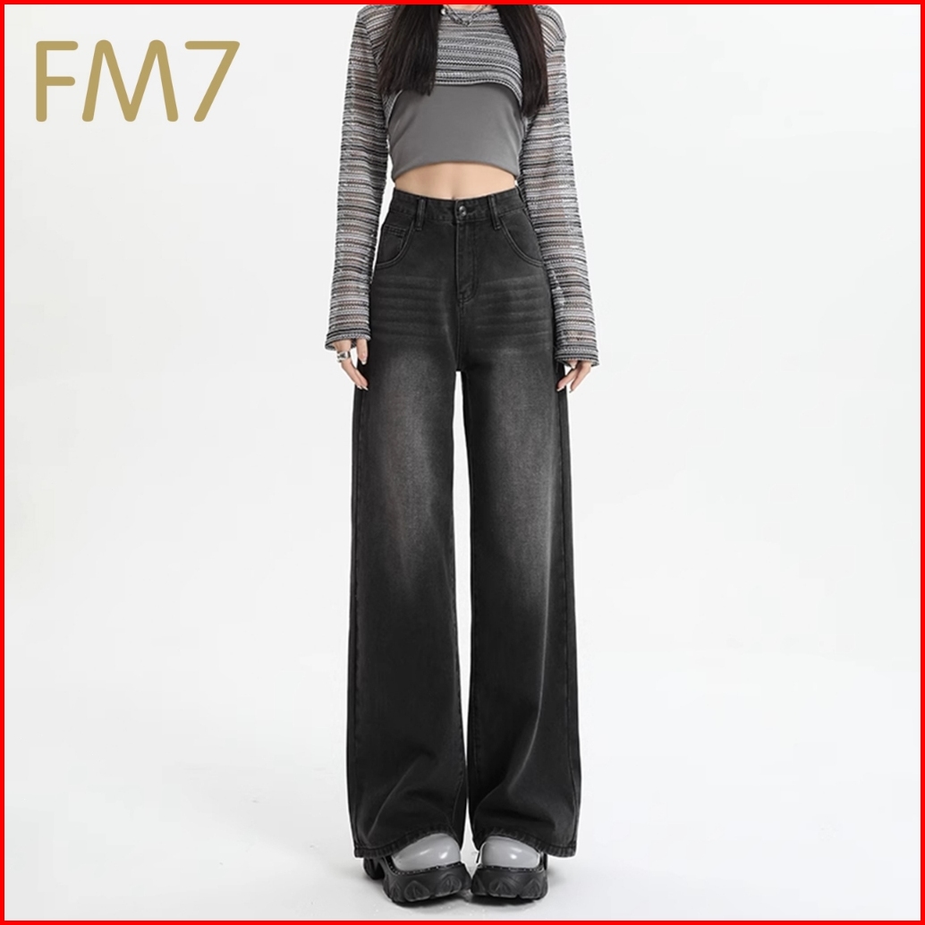 Fm7 L105 Highwaist Fashion Celana Jeans Wanita Pants Denim Kasual Loose Jins Boyfriend - Hitam Abu