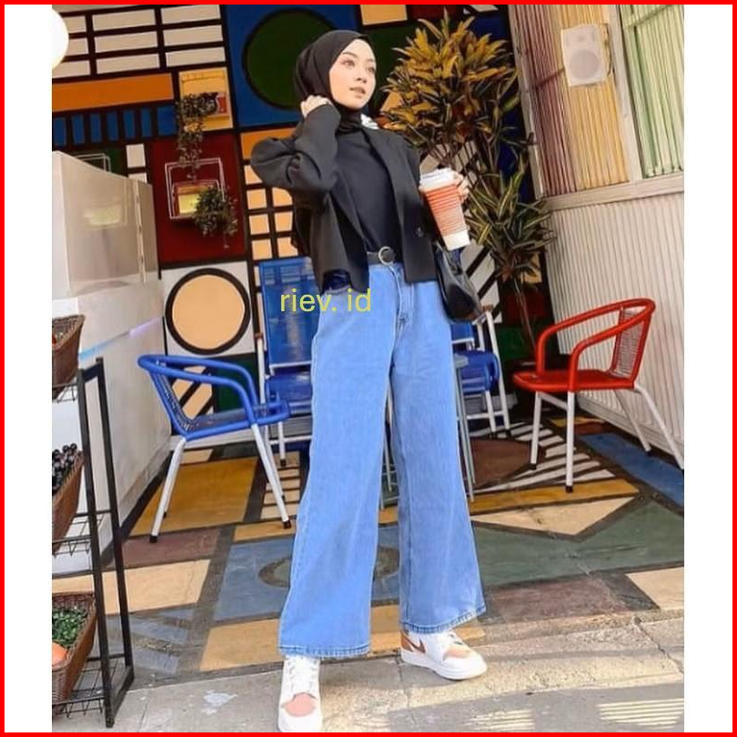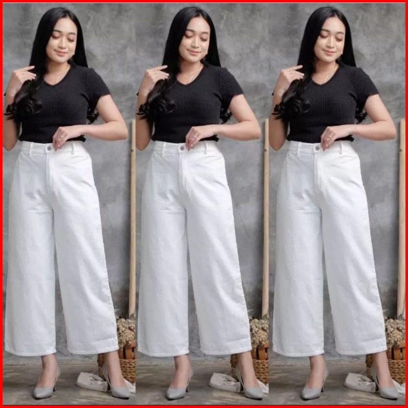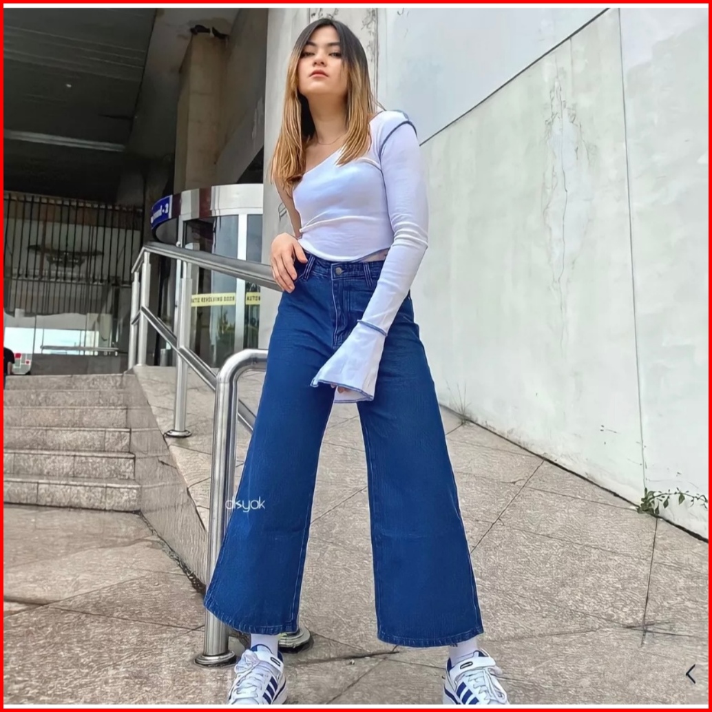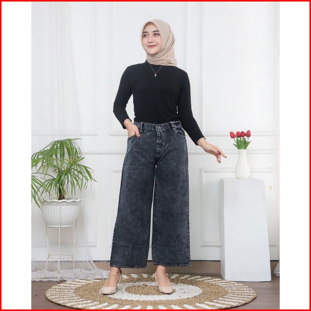 Kulot Mozza Jeans Bawahan Wanita High Waist Jeans Tebal Celana Kulot Celana Jeans Wanita