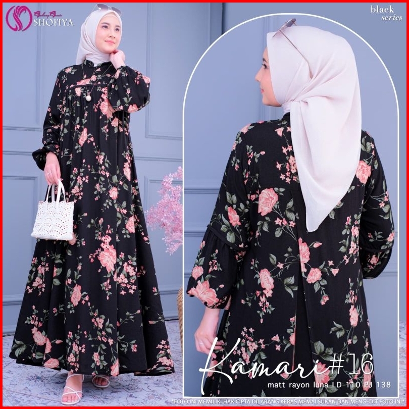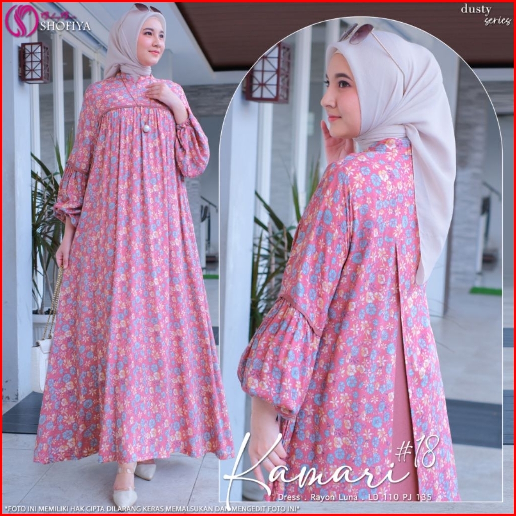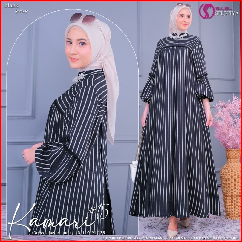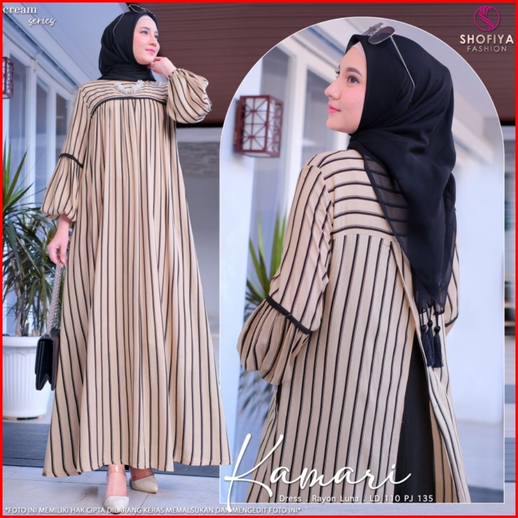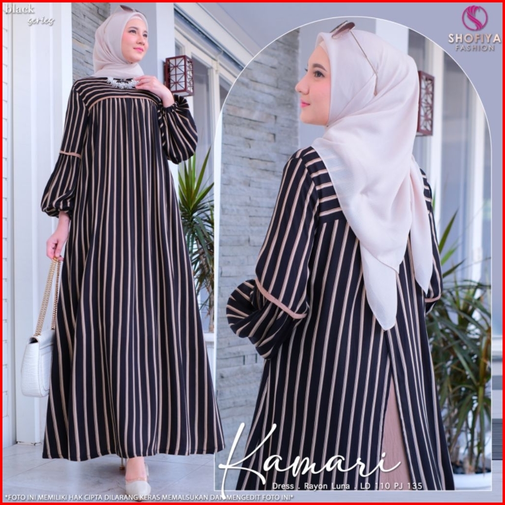 New Dress Motif Salur Garis Bunga Rayon Adem Ld 110 Kamari Ori Shofiya